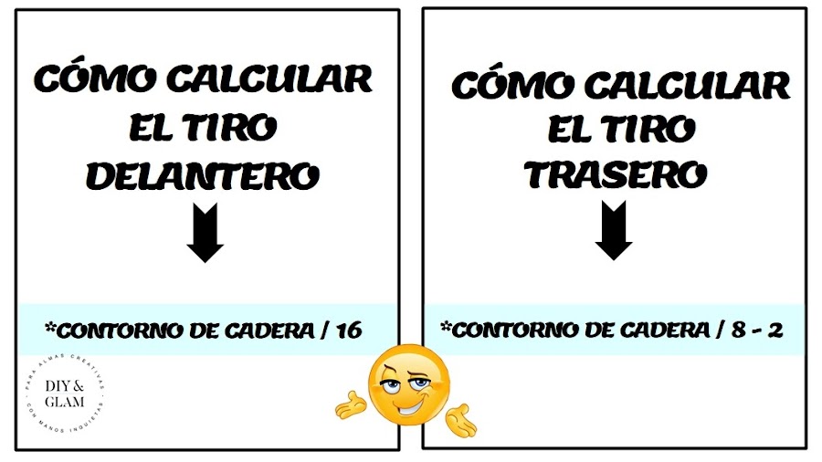 Y más abajo te dejo el cálculo para sacar las medidas del tiro delantero y trasero. Estos 2 recuadros lo debes tener muy en cuenta, si quieres los puedes imprimir, tienes unas casillas para que puedas apuntar tus medidas.