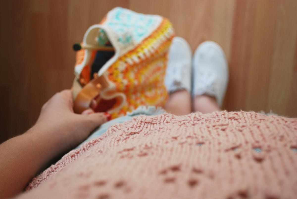 Cada verano, cuando nos vamos al pueblo, me llevo un arsenal de lanas y algodones, para poder tejer un poco lo que me venga en gana, y al final siempre acaba repartida por diferentes bolsas o en la maleta, así que este año he decidido hacerme una maxi bolsa para todas las lanas, y doy fe de que caben muchos ovillos!