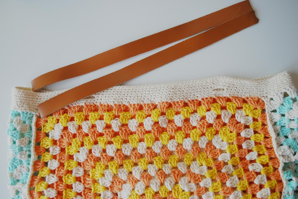 Para las asas he aprovechado una tira de cuero que tenía, pero lo mismo, os las podéis hacer de ganchillo, de cuerda o de otro tipo de tela.