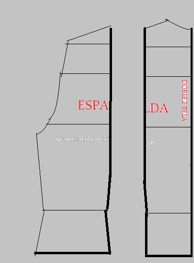 En la espalda haces lo mismo pero no tienes que añadir nada al ancho del patrón, ni tampoco tienes la pinza del pecho (lógicamente).