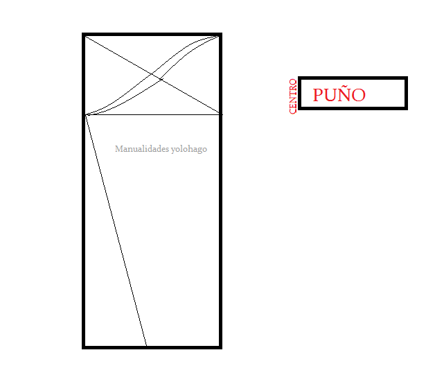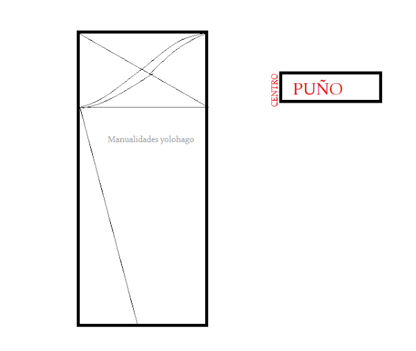 Este es el patrón base de la manga que le puedes añadir 2 cm. en la parte de abajo para formar un pequeño pliegue y con la medida que te de, haces el patrón del puño que no es otra cosa que un rectángulo.