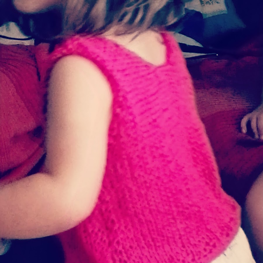 Yo cuando ya lo tenia cosido lo remate con puntodeslizado a crochet las sisas y el escote, ya,que tejerlo con unas agujas más grandes se quedaba un poquito fofito aunque también quedaba chulo.