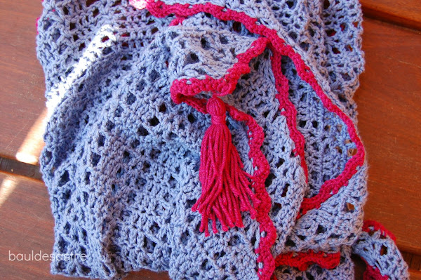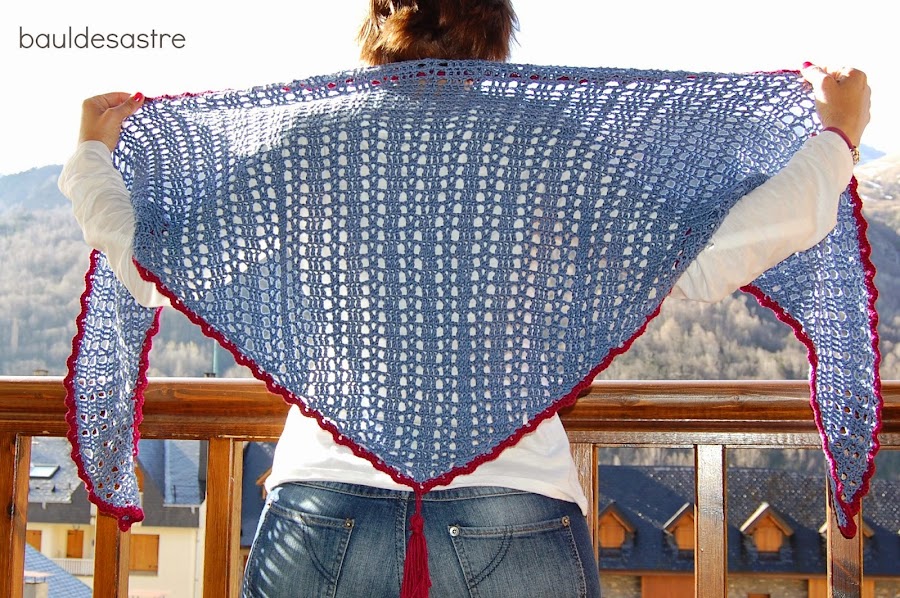 Finalmente, rematé el triángulo con una borla que creo da un toque muy alegre al chal.