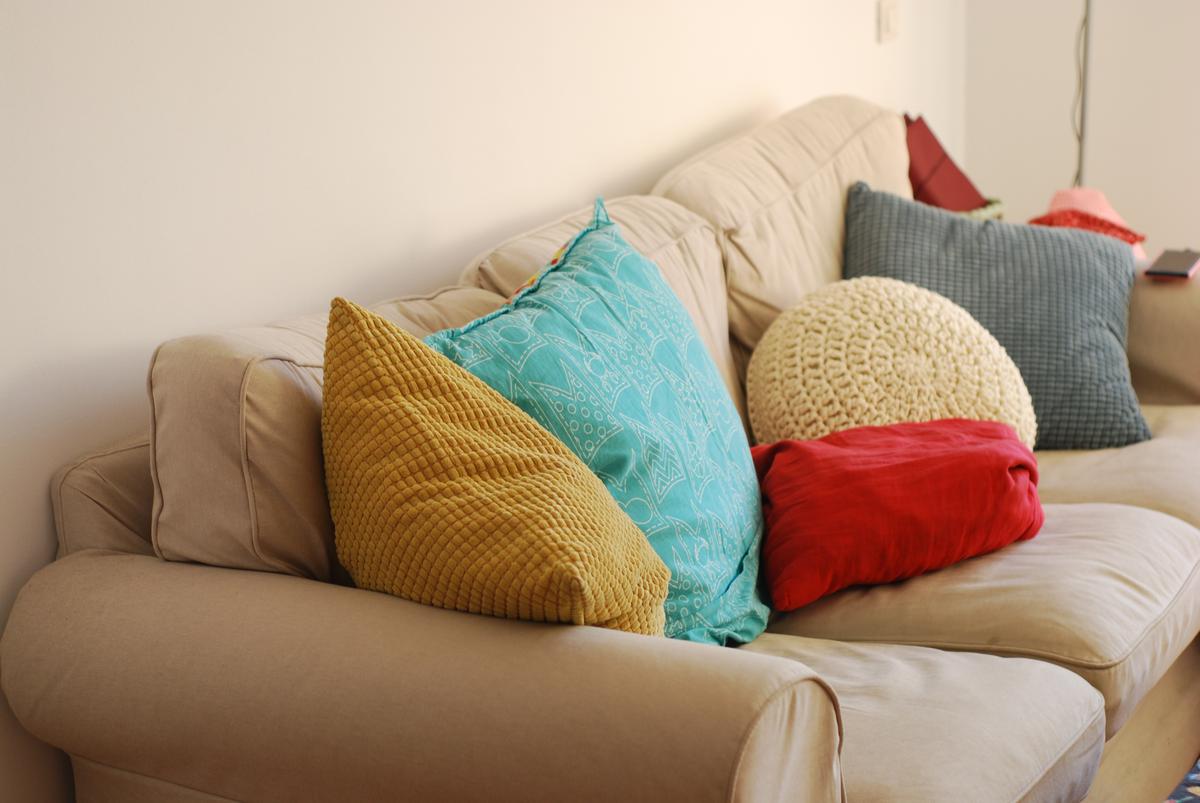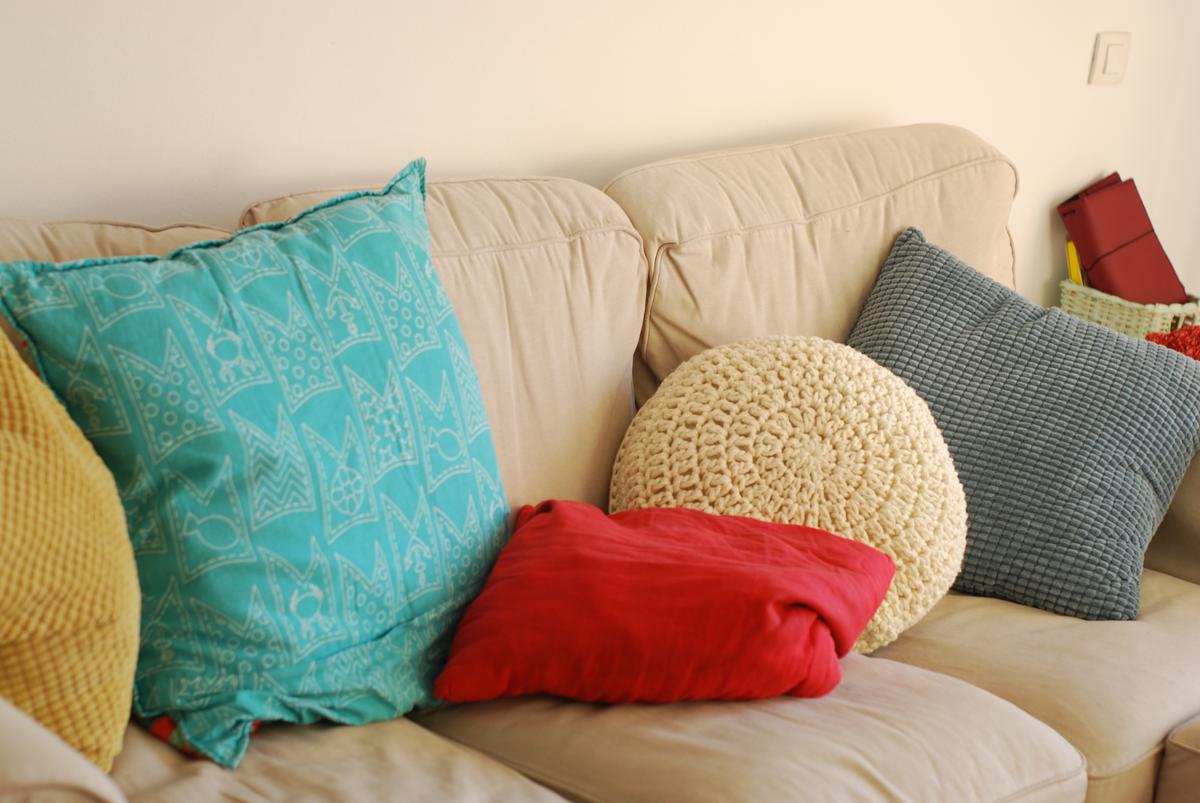 Es un patrón muy fácil, y es un cojín básico, pero para casa me suelen gustar las cosas más sencillas y después dar algún toque con otros objetos de decoración, así que este cojín, que de momento se ha quedado en el sofá, es perfecto.
