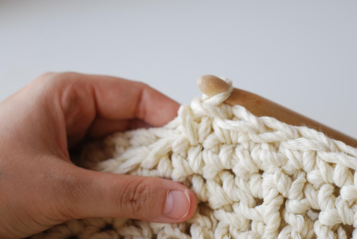 Para unir las dos partes podemos hacerlo con aguja lanera, con punto raso o con punto bajo. Yo he elegido el punto bajo para que le diera relieve.