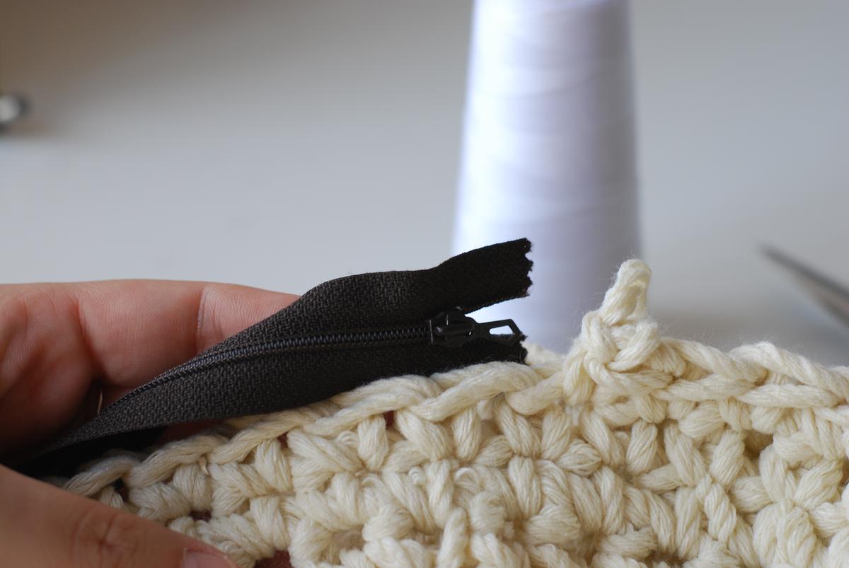 Una vez lo tenemos unido, toca coser la cremallera, la cosemos a mano, teniendo cuidado que ninguna de las dos partes se nos deforme.