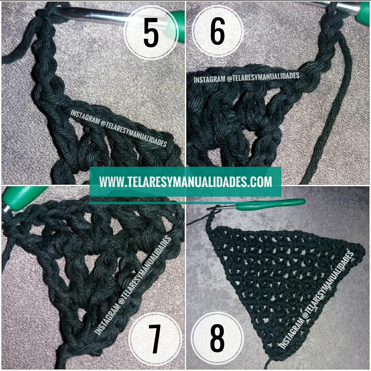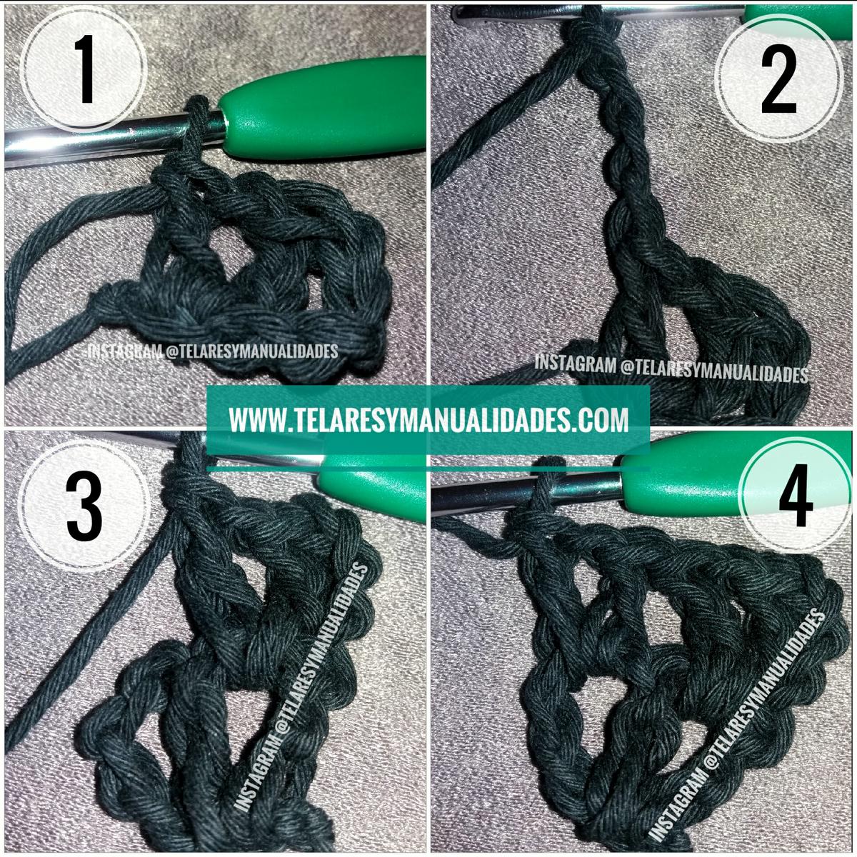 Tener en cuenta tejer las 4 cadenetas del final, en cada vuelta antes de voltear la labor.