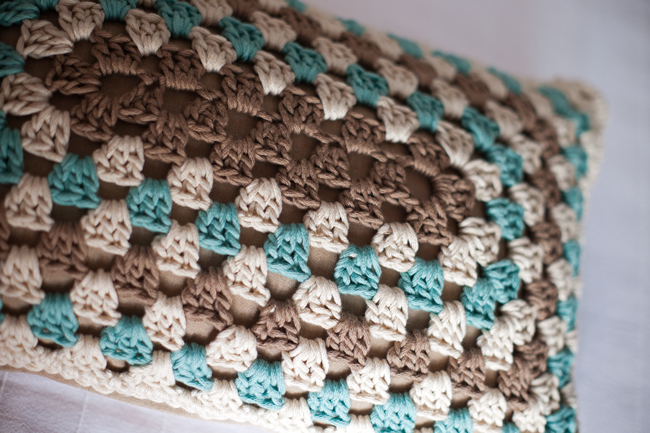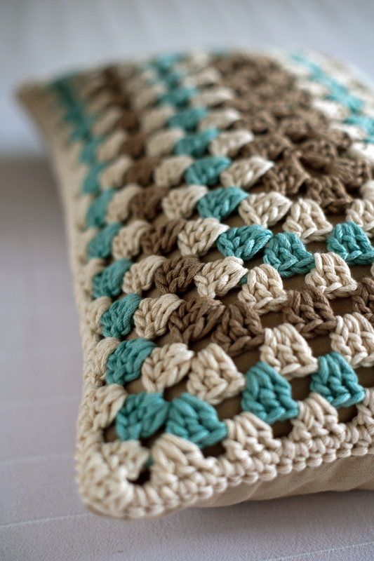 Pero esta vez no iba a ser un granny cuadrado, sino rectangular ya que tenía un cojín de esa medida que me estaba pidiendo a gritos una funda nueva. Sinceramente, el resultado de este cojín me ha gustado más que el anterior, no sé si por las tonalidades más claras o por su sencillez.