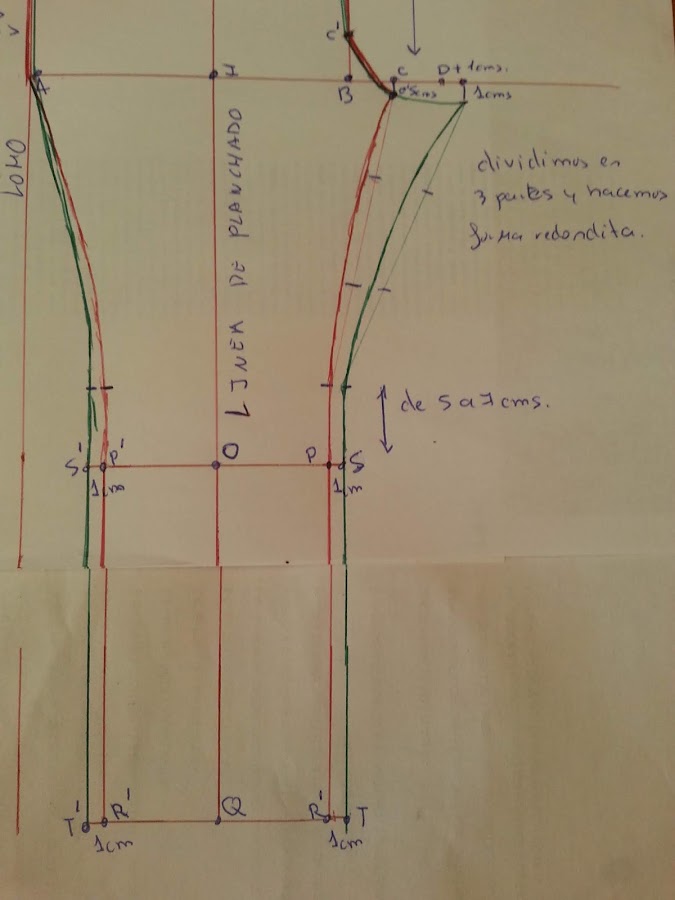 B-D= 1/6 de ¼ C.CADERA +1.BAJAMOS 1 CM D´.UNIMOS D´-C -C´ CON LÍNEA CURVA.