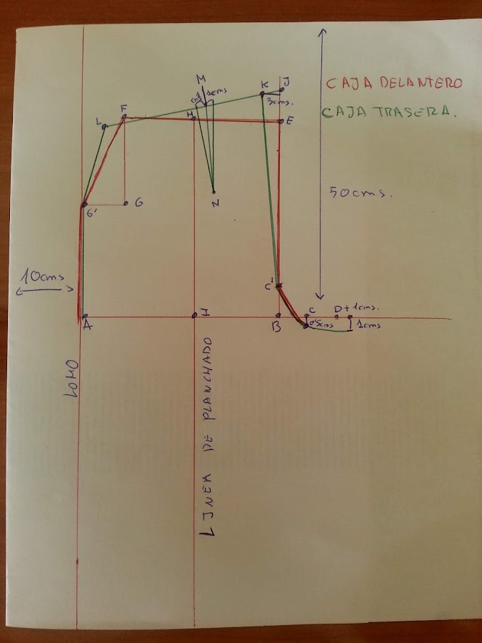 D´-J=MEDIDA DE LA CAJA TRASERA.METEMOS 3 CMS Y LO LLAMAMOS K. UNIMOS CON C´MEDIANTE LÍNEA RECTA.