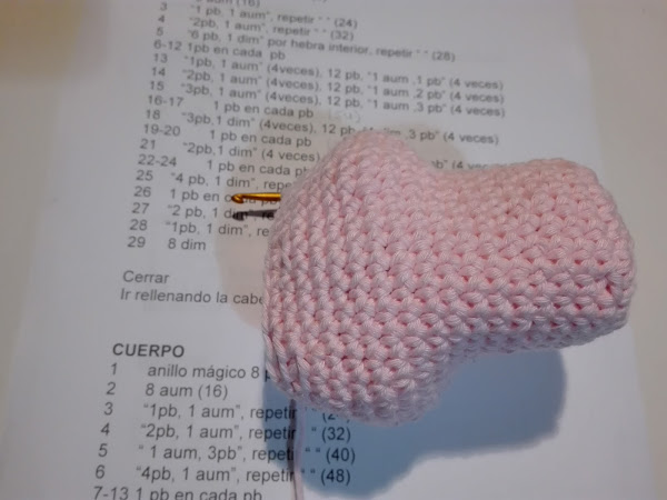 Este trabajo va a depender mucho del hilo utilizado. En mi caso, cometí el error de comprar un hilo demasiado grueso y a la hora de tejer los dedos, la mano quedaba demasiado grande en proporción al cuerpo.