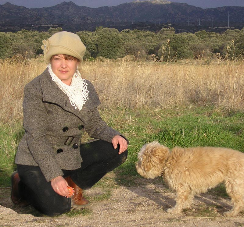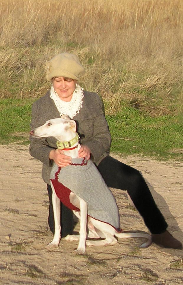 Os pongo unas fotos mías, del sombrero, de mis perros y llevando el chal-bufanda de Aurora, que queda precioso.