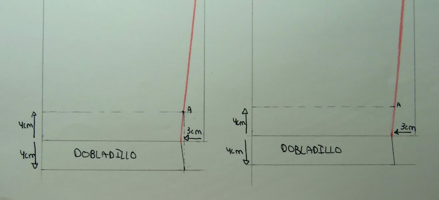 Vamos a dibujar el dobladillo en el papel, porque al estar entubada, la forma del dobladillo se hace en modo espejo, para que a la hora de coserlo no nos falte tela