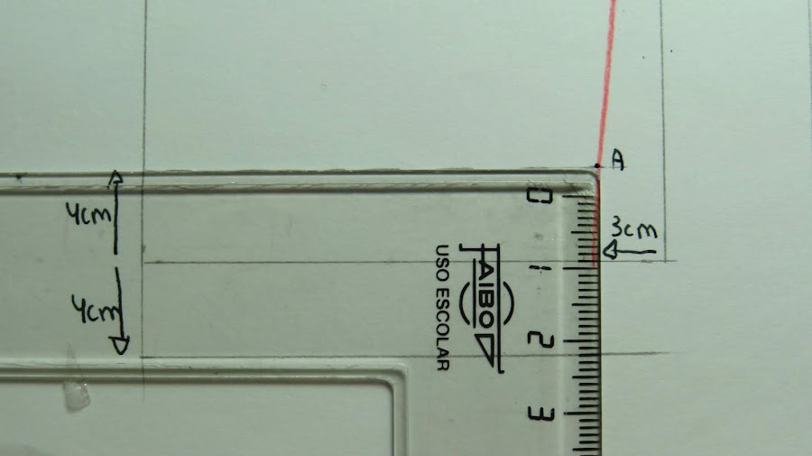 Escuadramos la última línea que hicimos hasta el punto A, y en ese punto hacemos una línea hacia abajo