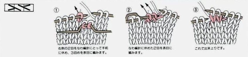 Para que la trenza gire hacia la izda, hay que poner 2 puntos en la aguja auxiliar hacia delante, tejemos el siguiente punto y después los 2 ptos de la aguja auxiliar.