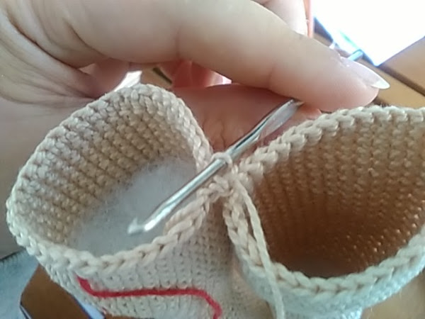 39 A 41. 16 MPA, 8 PE. 24. CORTAR EL HILO, DEJA SUFICIENTE PARA COSER. CUT YARN QUITE LONG.