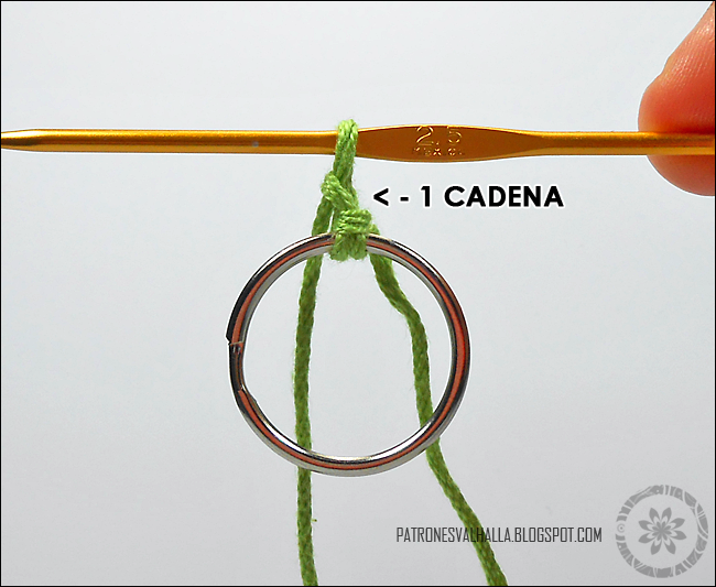 Levanta una cadena y haz 25 medios puntos sobre la argolla. (25 puntos)