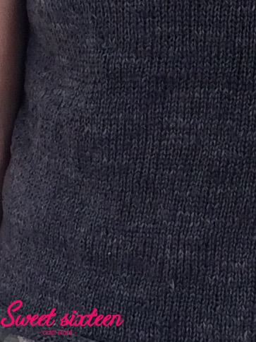 Seguimos tejiendo hasta que la labor mida en total (40, 43, 46) cm. Cerramos flojos todos los puntos en una vuelta del derecho.