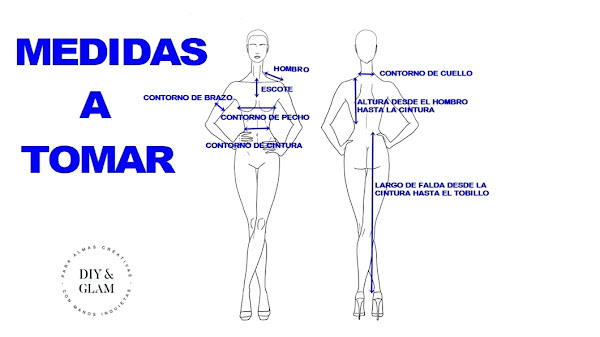 También tienes las medidas que vas a necesitar para hacer el vestido. El patrón lo vamos a hacer desde cero y con tus medidas. Lo bueno de este vestido es que sólo vamos a necesitar el patrón de la parte superior, la parte de la falda son 3 rectángulos y los cortaremos sobre la tela sin necesidad de patrón.