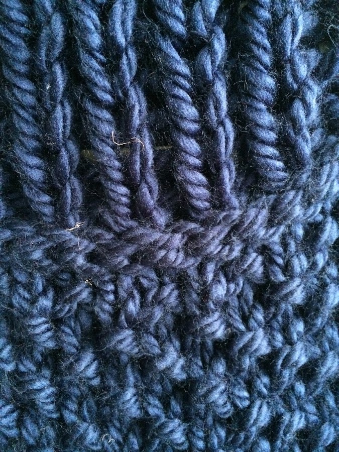 - Levantamos los puntos del cuello y tejemos a punto elástico 1x1 hasta la altura deseada (en función de si queréis llevarlo vuelto o no, o más o menos alto) y cerrais.