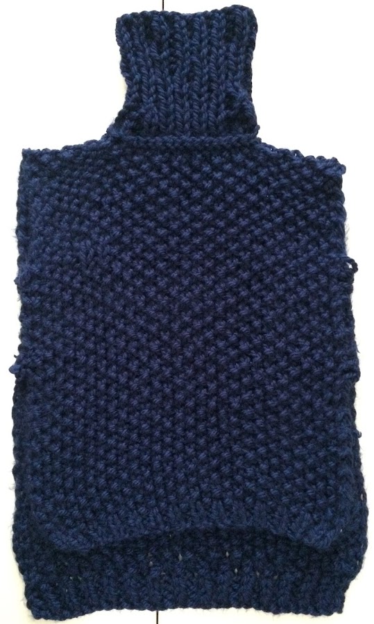 - Continuamos tejiendo a punto garbanzo los 30 puntos hasta llegar al largo deseado (más corto que la espalda).