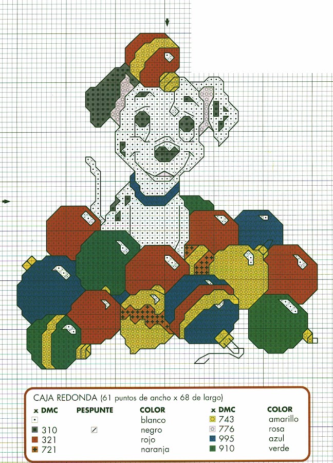 Esquema de uno de los 101 perritos más famosos de Disney jugueteando con las bolas del árbol de navidad. Es perfecto para decorar la habitación de los más pequeños, y a ellos les encanta. Os sugiero bordar en una esquina la fecha para que vuestro hijo(a) recuerde en un futuro la navidad en que su mami le ha realizado este cuadro. Os sugiero una enmarcación de media caña en color rojo lacado, o cualquiera de los colores del esquema. Que os quede lindo !