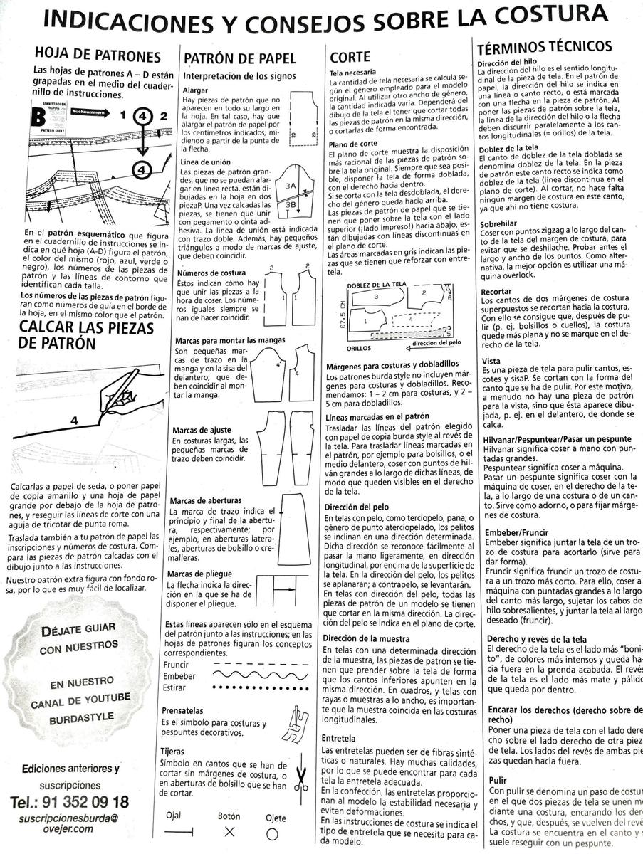 La verdad es que en cada número de la revista Burda Style nos aclaran el significado de cada marca y nos dan mucha información con respecto al patrón, el corte y demás. Os recomiendo que siempre que tengáis alguna duda, recurráis a este recurso que encontraréis al principio de las hojas explicativas de los patrones.