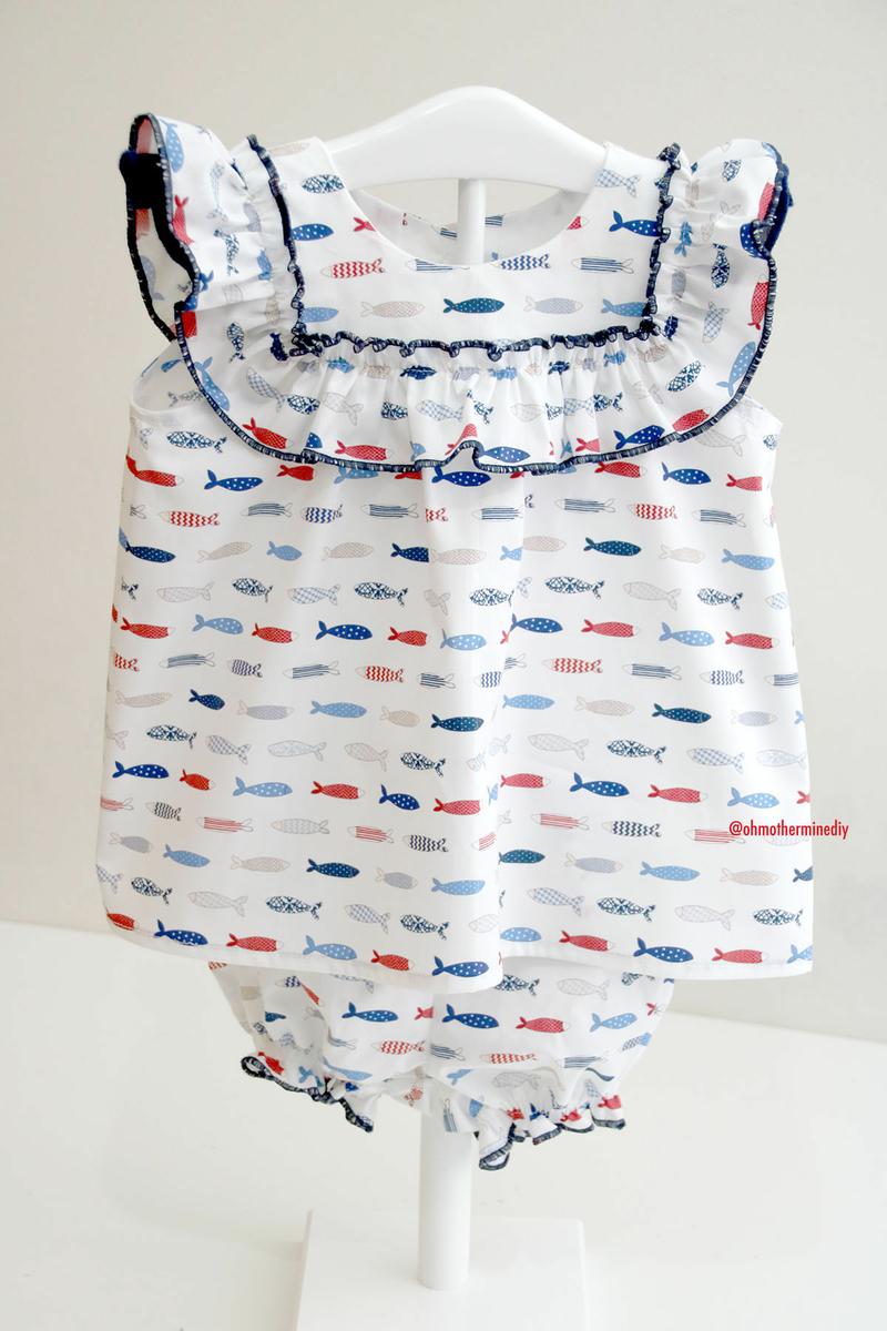 La tela es un popelín que compré en RATUCOS esta es la tienda de telas online donde siempre compro las telas para proyectos infantiles… Supongo que por la variedad, su gusto por las tendencias y la rapidez a la hora de enviarte las telas Además de popelín, podéis utilizar un sin fin de telas para este conjunto: pique, plumeti, batista, voile…. cualquiera os puede valer!!!!