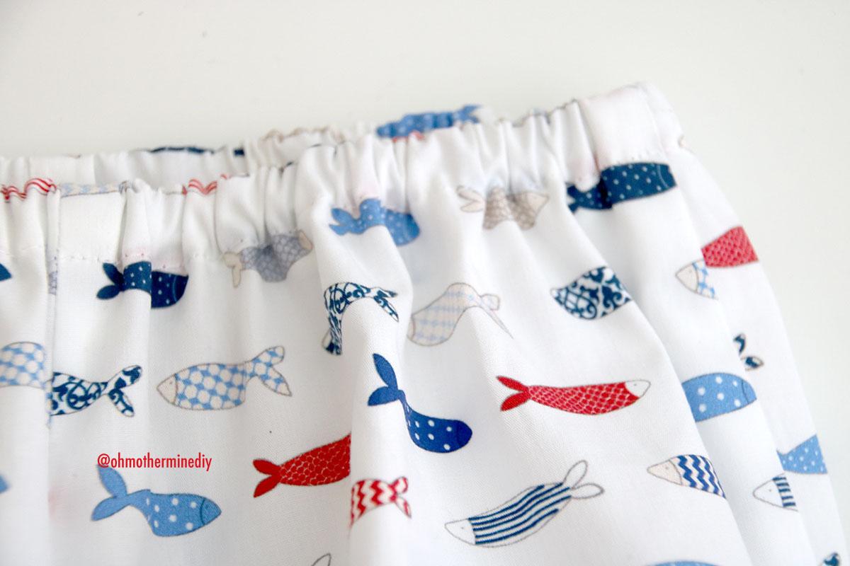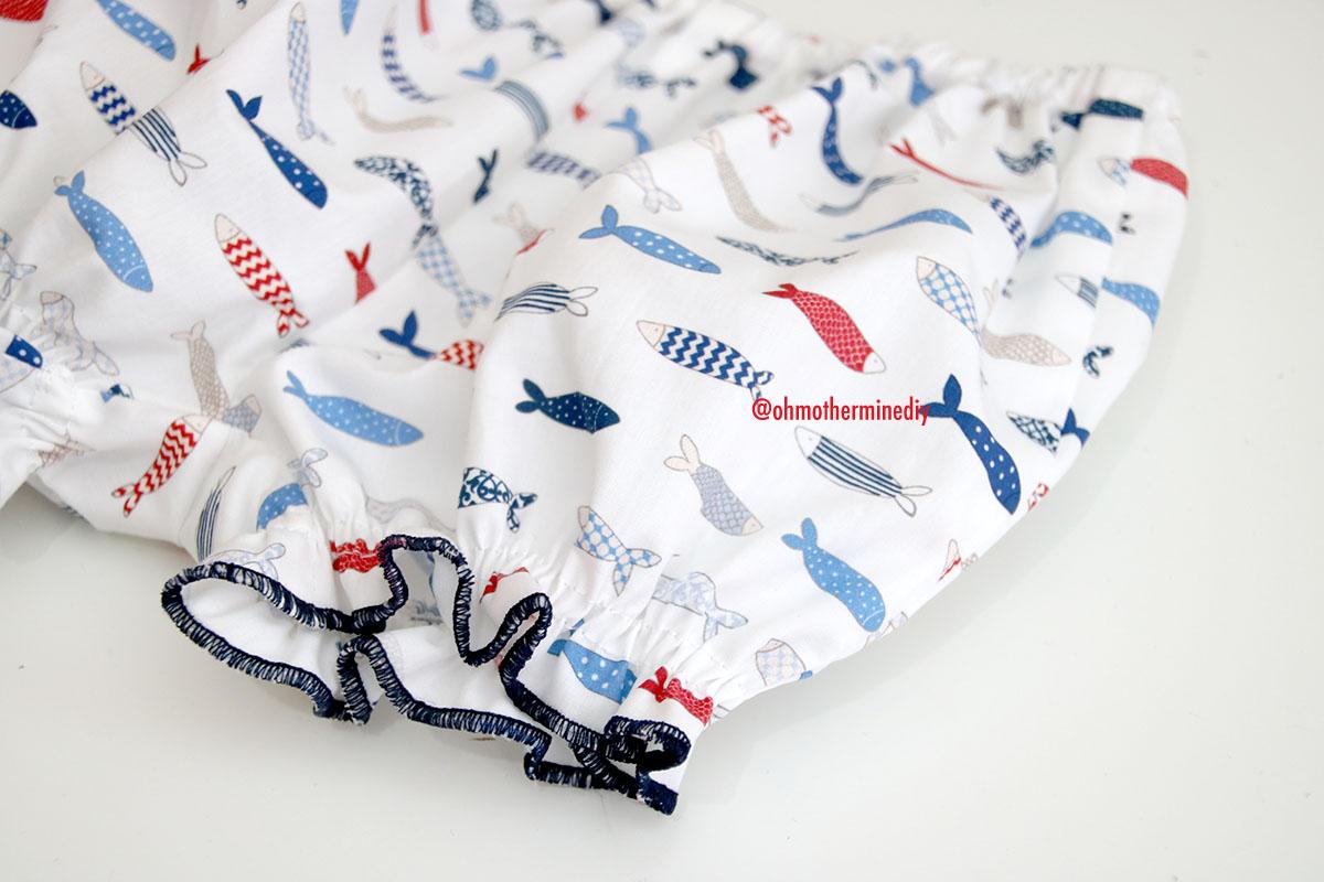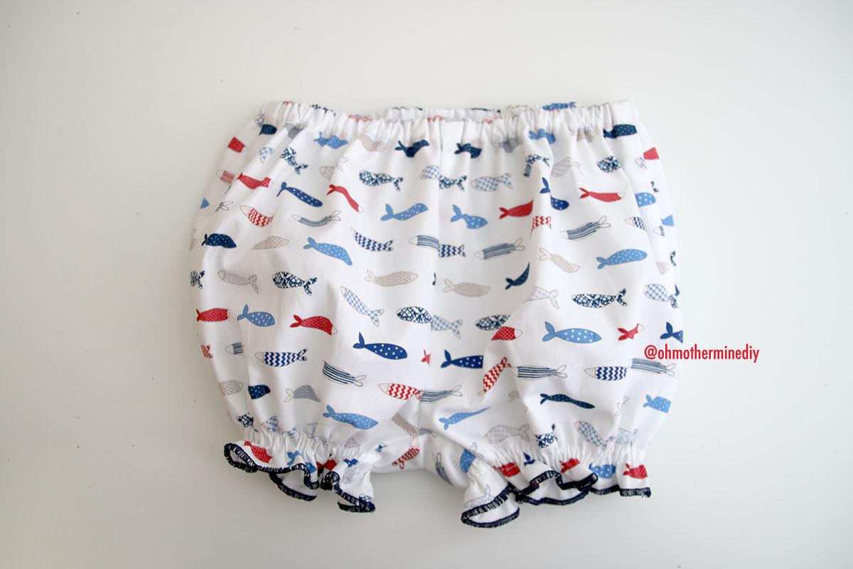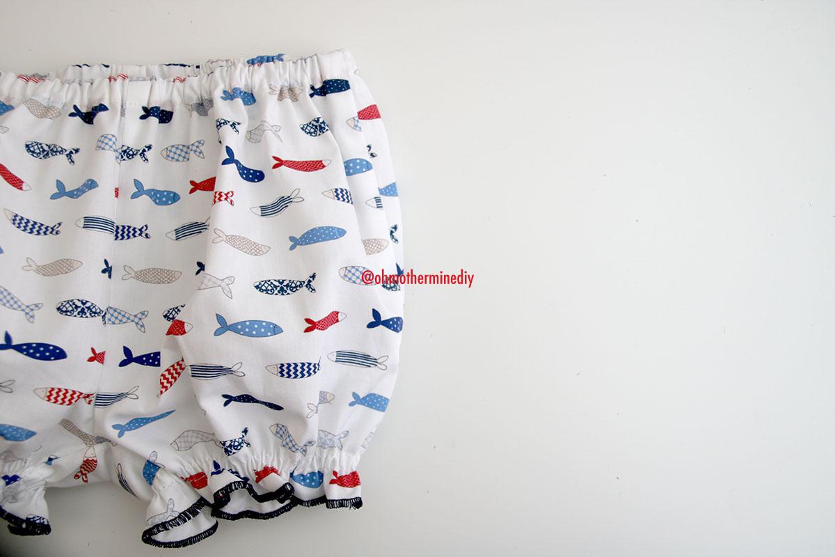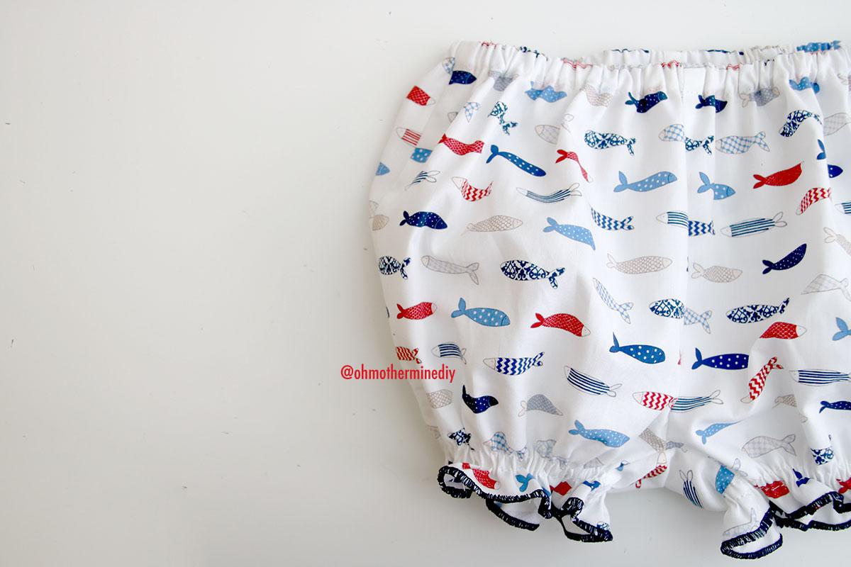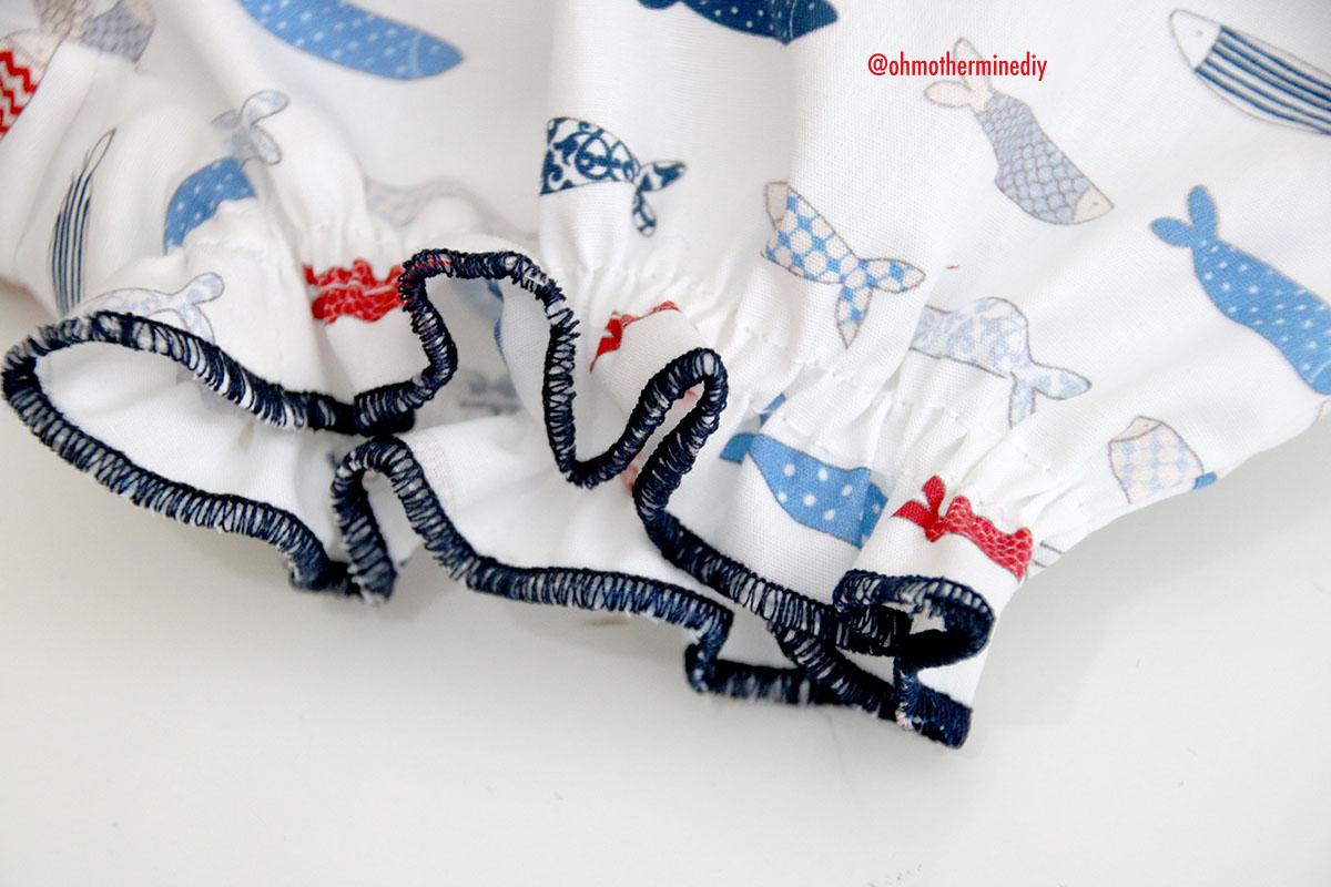 Este tipo de bombachos son muy muy fáciles de hacer, porque al no tener cintura y al ser anchitos no tienen complicación ninguna en cuanto a la costura se refiere!!! La terminación de la pierna la hemos hecho con la remalladora, una puntada decorativa que hace de contraste con la tela. Si no tenéis remalladora en casa, podéis hacerlo también con un pequeño dobladillo o bien, podéis utilizar la puntada de zig zag más pequeña (puntada 0 o de ojal) y con la misma máquina automática con la que cosemos, haremos esa puntada decorativa por todo el bajo!!!