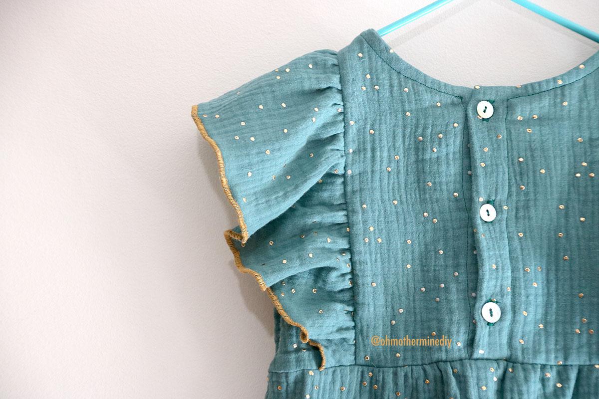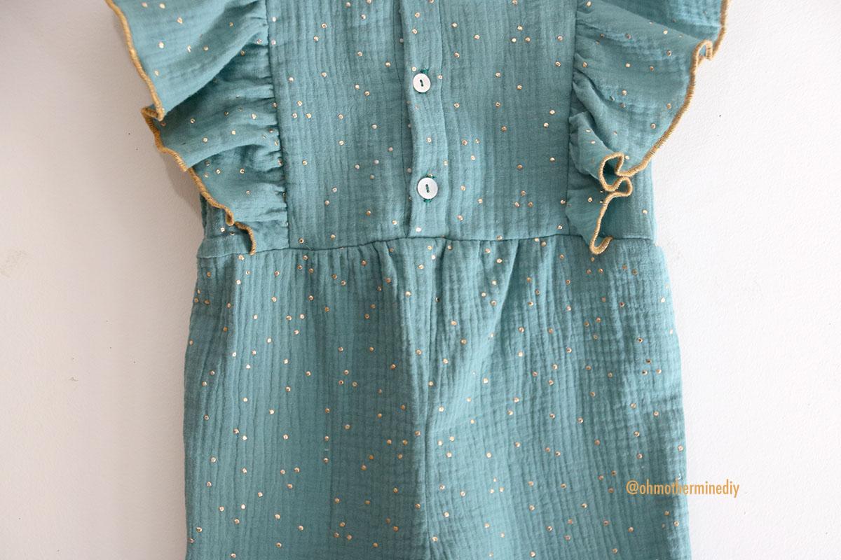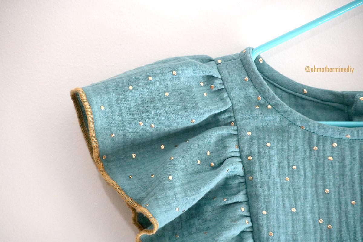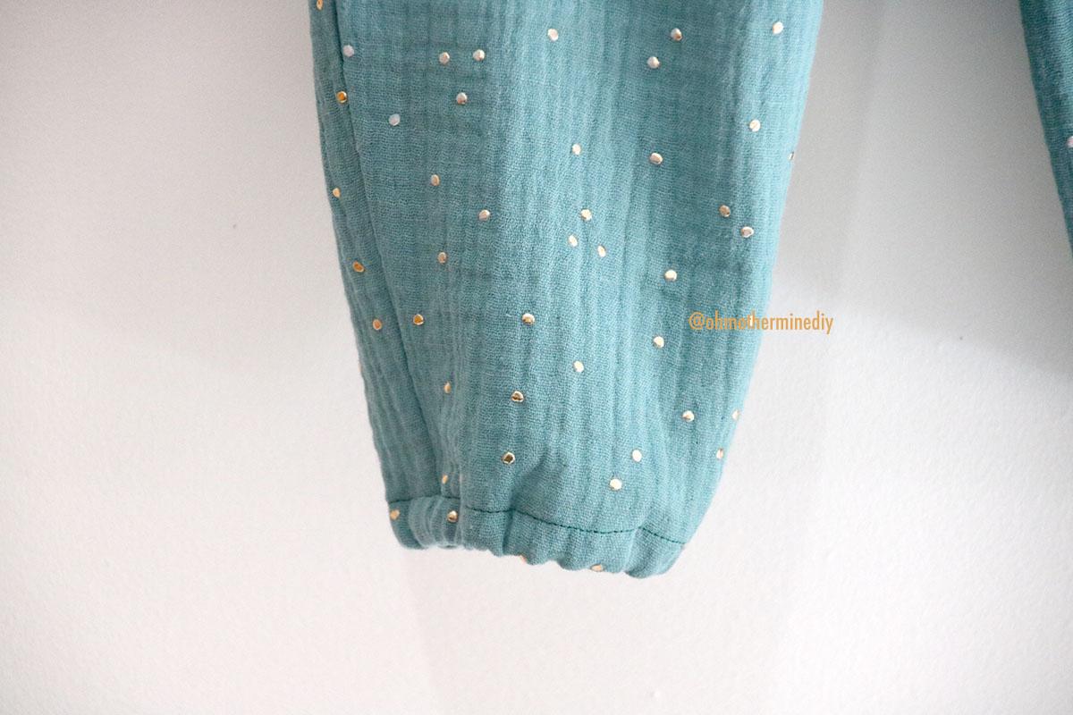 La tela que he elegido es una doble gasa con motitas doradas que compré en RATUCOS, ya sabéis que he comprado las telas de infantil para esta temporada en esta tienda, que dicho sea de paso: me encanta y son muy muy rápidos. Además de doble gasa o gasa sencilla, os animo a que probéis lyocell o tercel, incluso jeans que seguro que le queda fenomenal