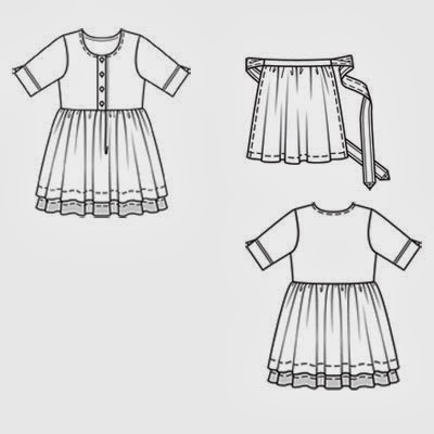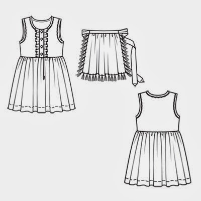 Pero si no os va el look Zara y preferís el look tirolés, el conjunto de la pequeña tirolesa también lo teneis en la revista de este mes (aquí es donde ya empezamos a desvariar). Tenemos dos modelos de vestidos y mandiles para que nuestras princesas sean la alegría de la pradera: