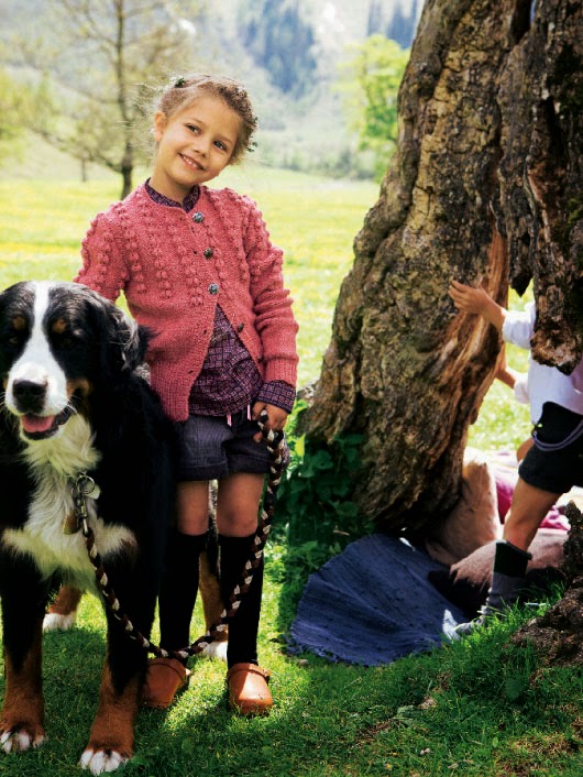 ¿Veis como hay el comprar el Burda CADA MES?. Nunca se sabe donde vienen escondidos los tesoros. Tampoco se olvida de las que sois mañosas con el punto, porque además del conjunto bermuda camisa tirantes chaqueta, los trajes de tiroleses y el de pastorcilla , también nos regala el patrón de esta rebeca de madroños que mando directamente a mi departamento de punto: hazmelomami.com