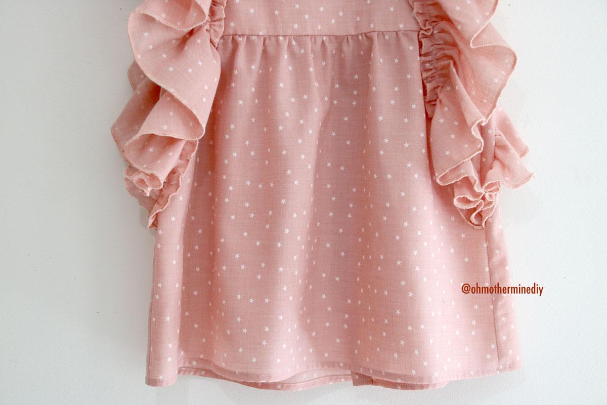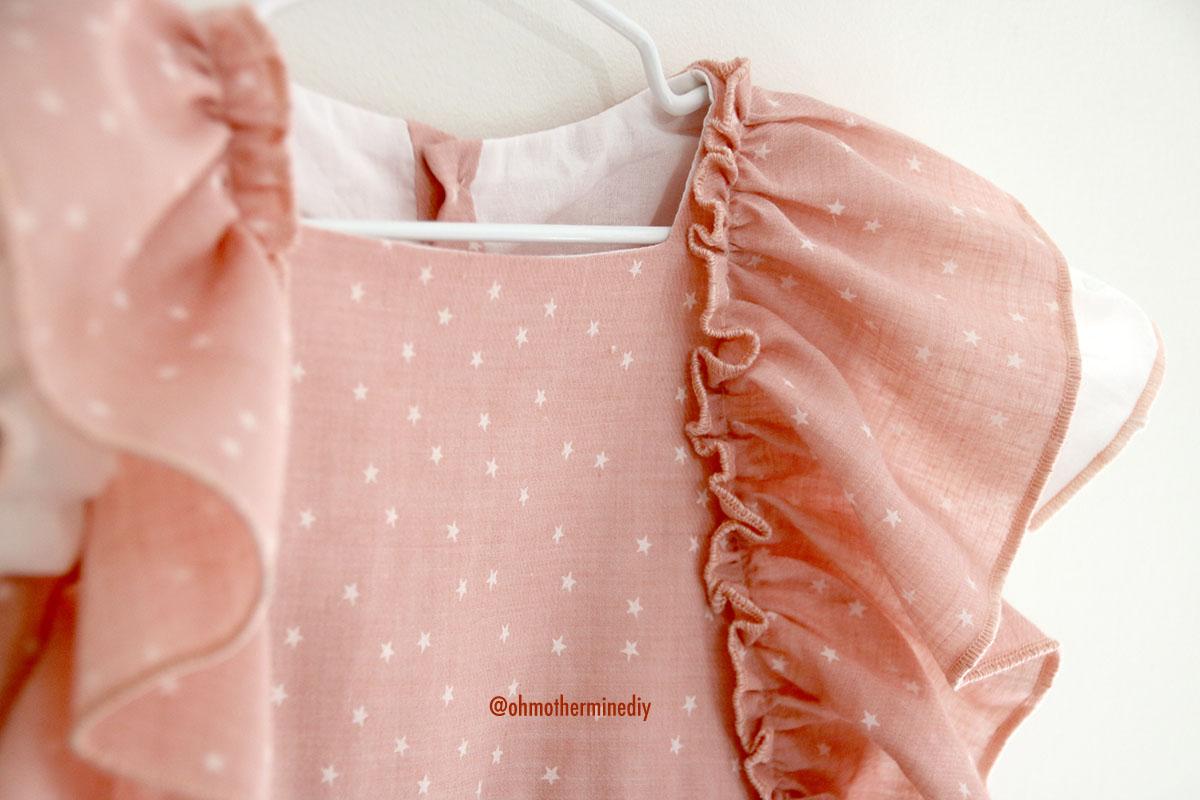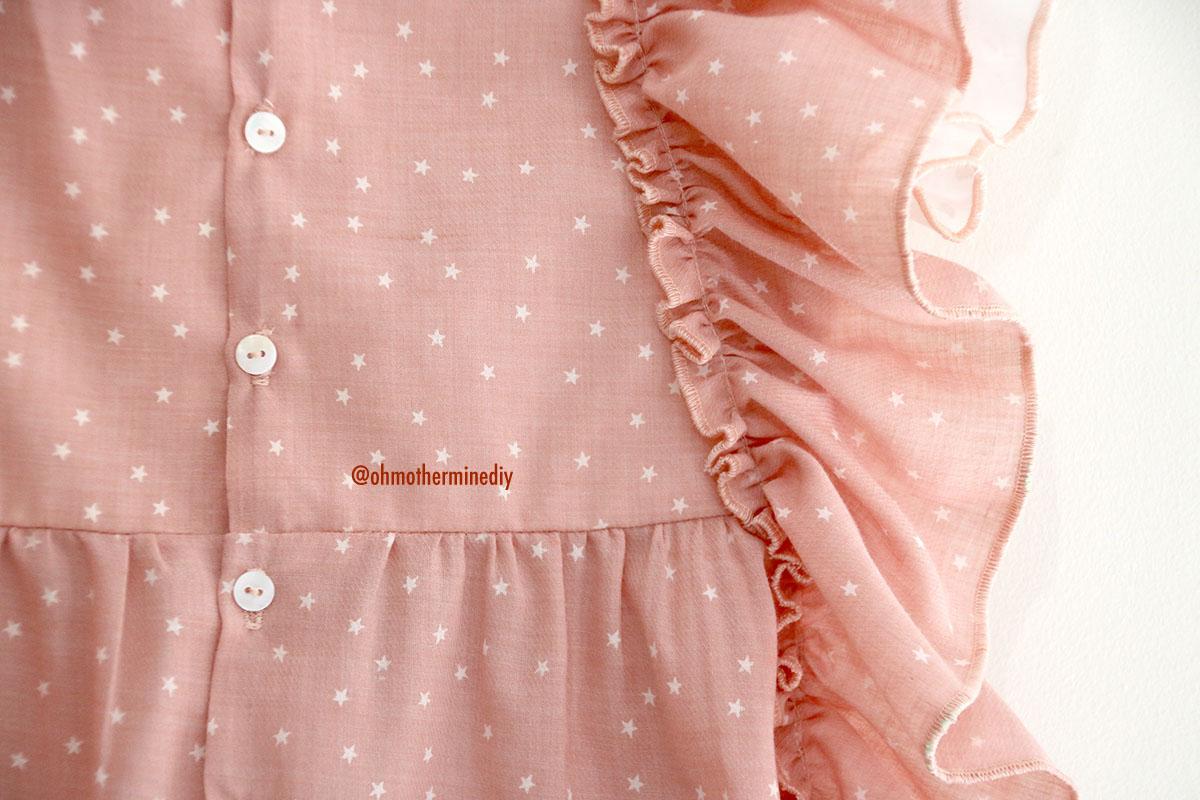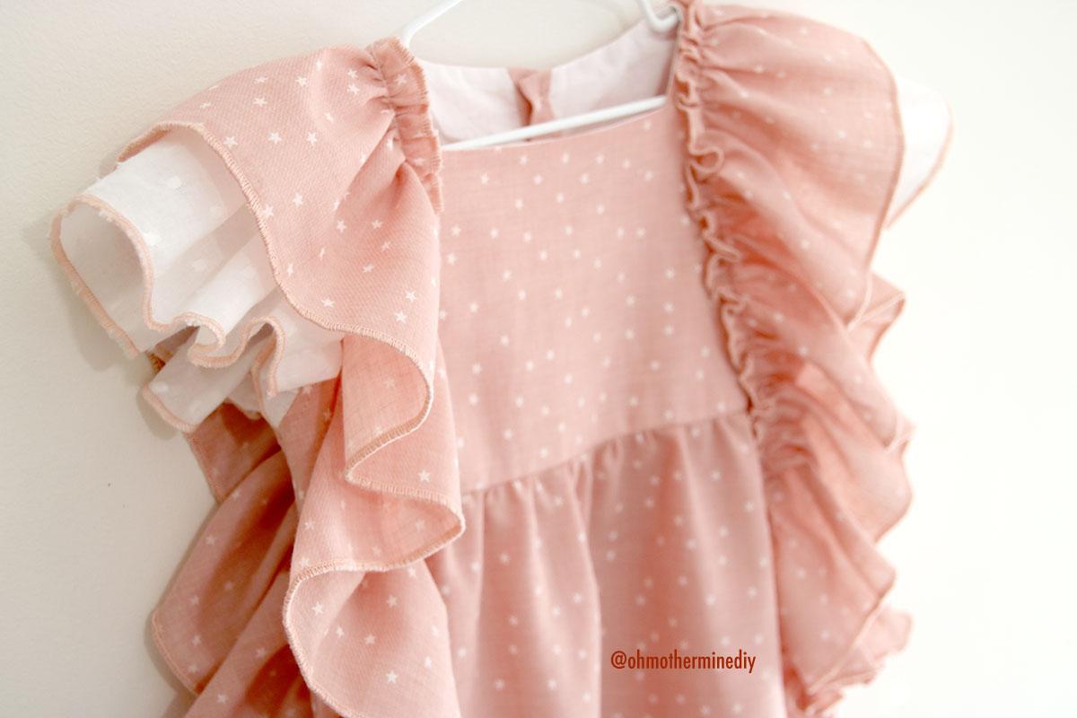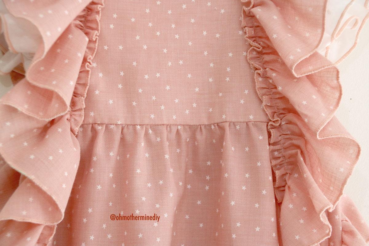 La tela es una gasa twill que compré en RATUCOS.COM y como ya os he dicho es una gasa finita, que de hecho es la misma que NANOS utiliza esta temporada en algunos de sus prendas. Para este proyecto lo que si os aconsejo es tela muy finita: plumeti, voile, batista o gasa… Telas fresquitas y vaporosas para el verano que además harán que el volante exterior tenga caída y no se quede muy abullonado y rígido.