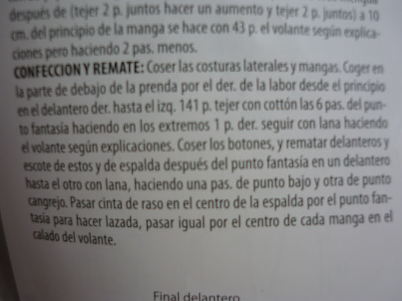 La cantidad de puntos, las agujas, la lana utilizada, etc. cada una de ustedes hagan la muestrita y miren a ver los que necesitan.
