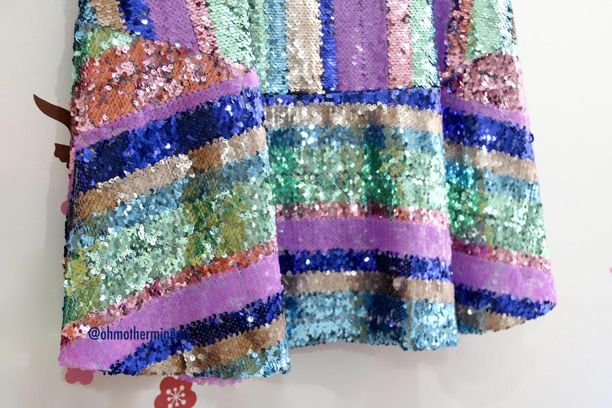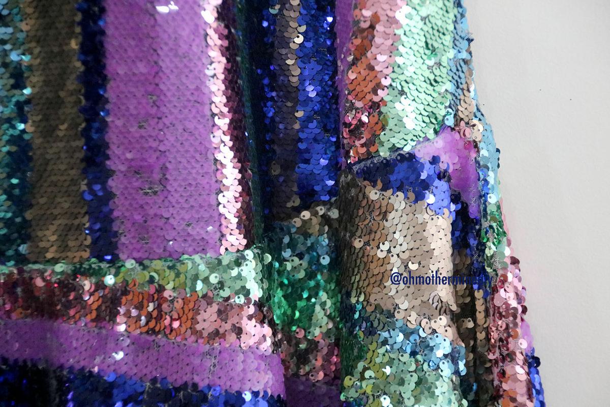 La tela la compré en RETALES LIDIA, la tienda en la que suelo comprar cuando subo a Galicia, la tierra de mi familia política. Pues bien, esta tienda tiene más variedad en telas y retales en la tienda física que en la tienda online. Así que si queréis algunas lentejuelas de rayas, estampados o lo que sea, os aconsejo que llaméis o enviéis un email para preguntar por los retales.
