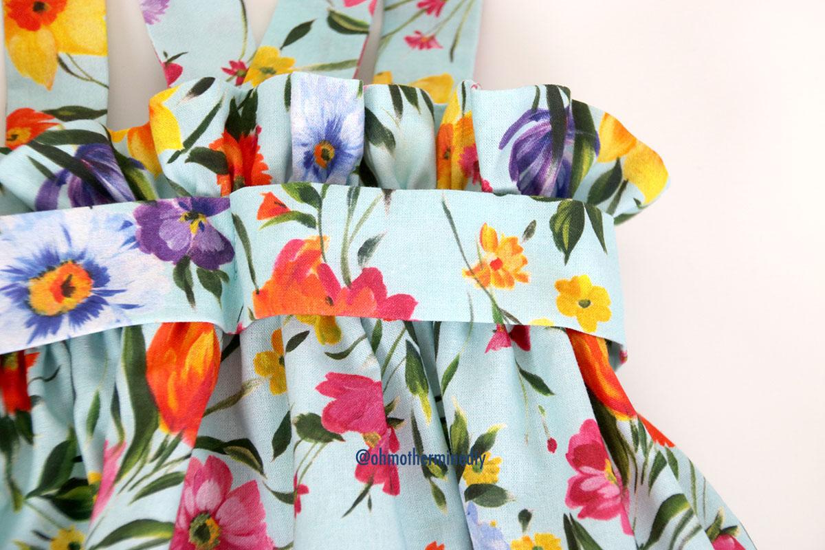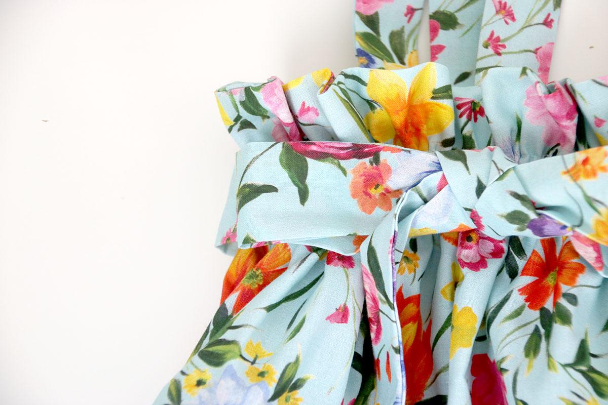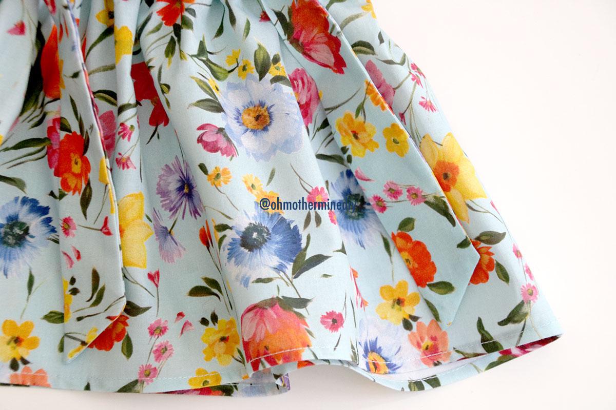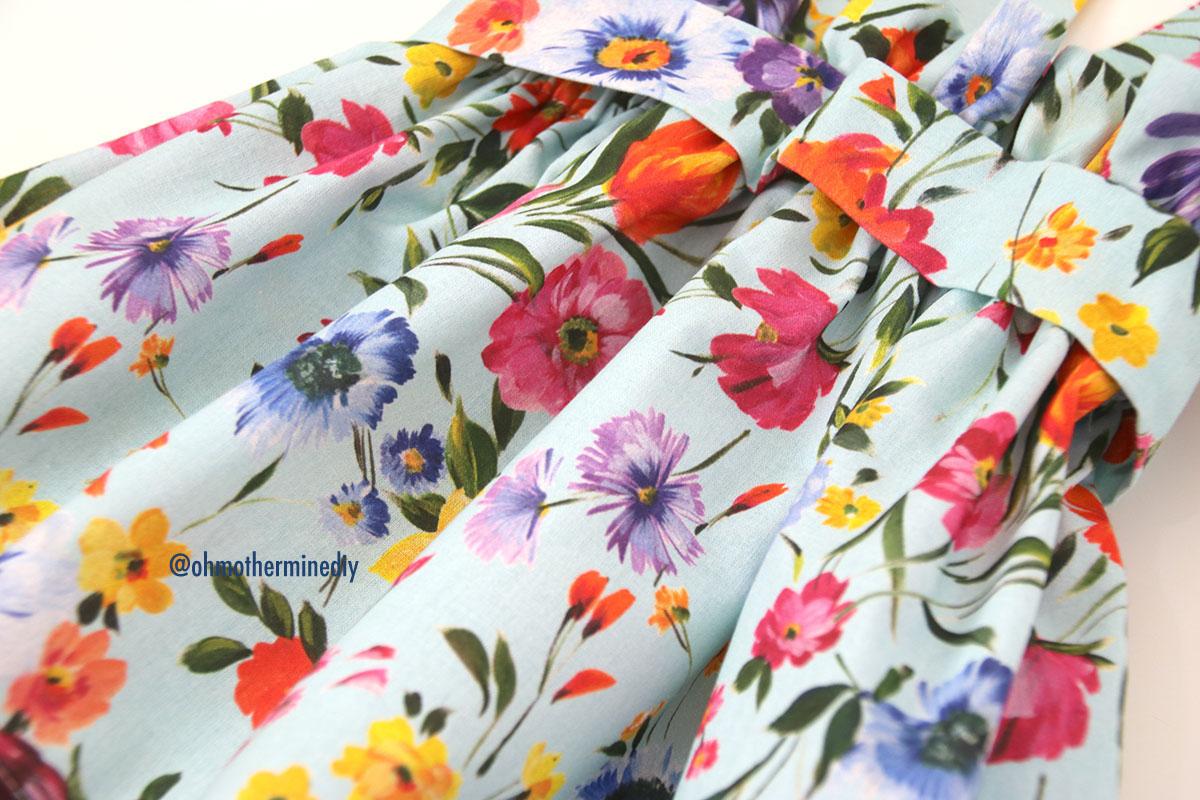 La tela es un popelín de flores de la nueva temporada de verano que compré en RATUCOS.COM Es una tela perfecta para este tipo de faldas, además esta tela es fácil de manejar, planchar y coser… Y el precio está fenomenal!!!!! Pero para esta falda podéis utilizar casi toda la variedad de tipos de tejido infantil que hay: piqué, batista, viyela, plumeti, sarga…