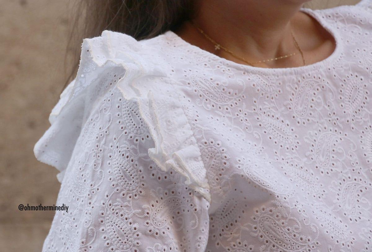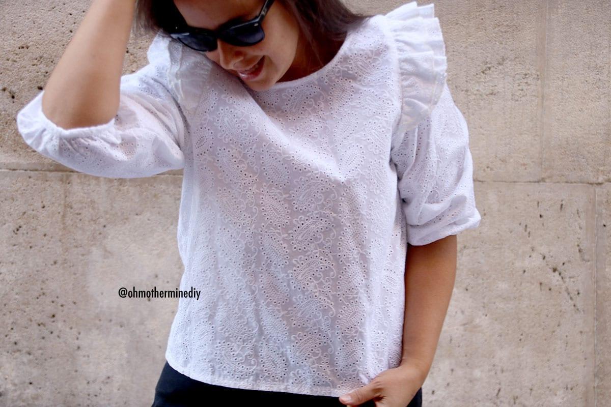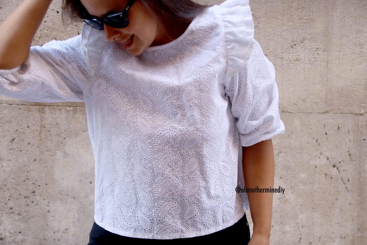 La tela la compre en RATUCOS.COM es una tela bordada preciosa, perfecta para darle algo de vida a esta blusa básica. Ya no está en online porque la compré hace varias temporadas, pero aquí os dejo una que os puede servir!!!!