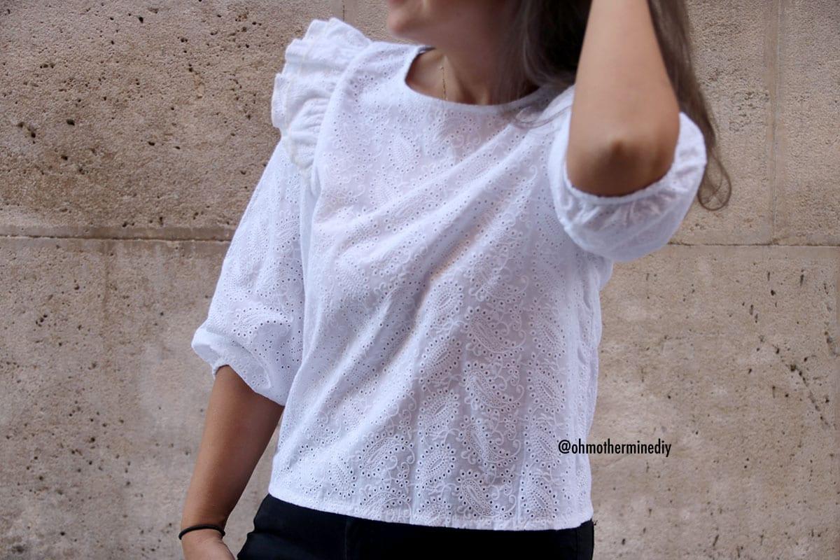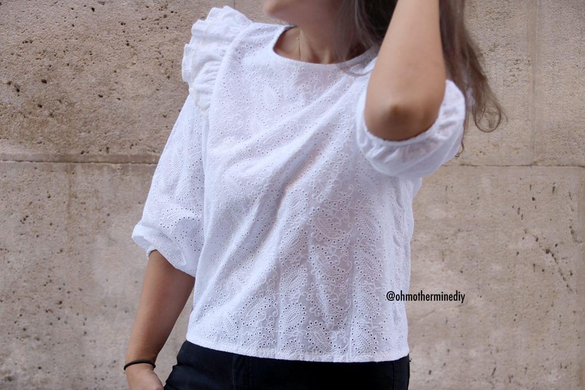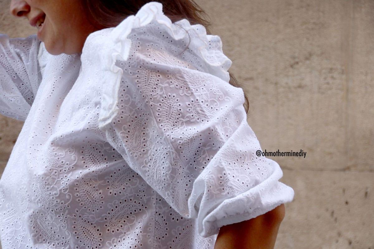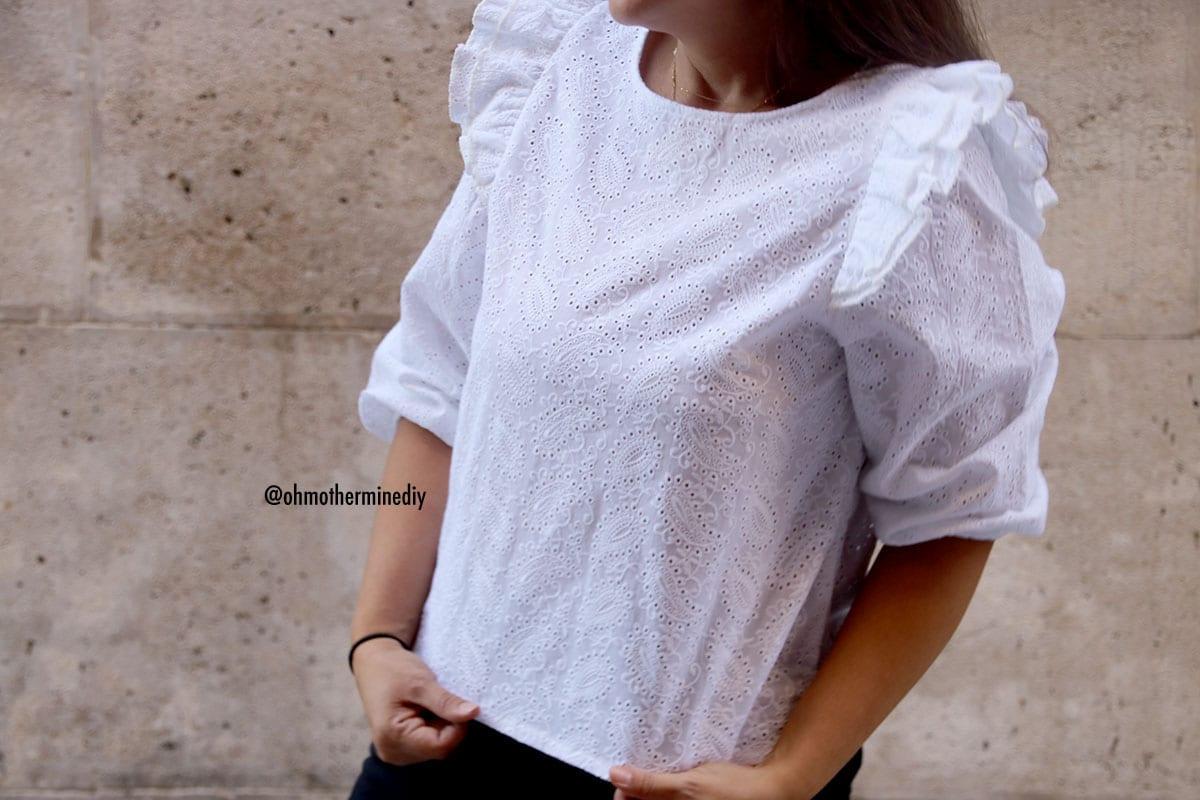 La tela la compre en RATUCOS.COM es una tela bordada preciosa, perfecta para darle algo de vida a esta blusa básica. Ya no está en online porque la compré hace varias temporadas, pero aquí os dejo una que os puede servir!!!!