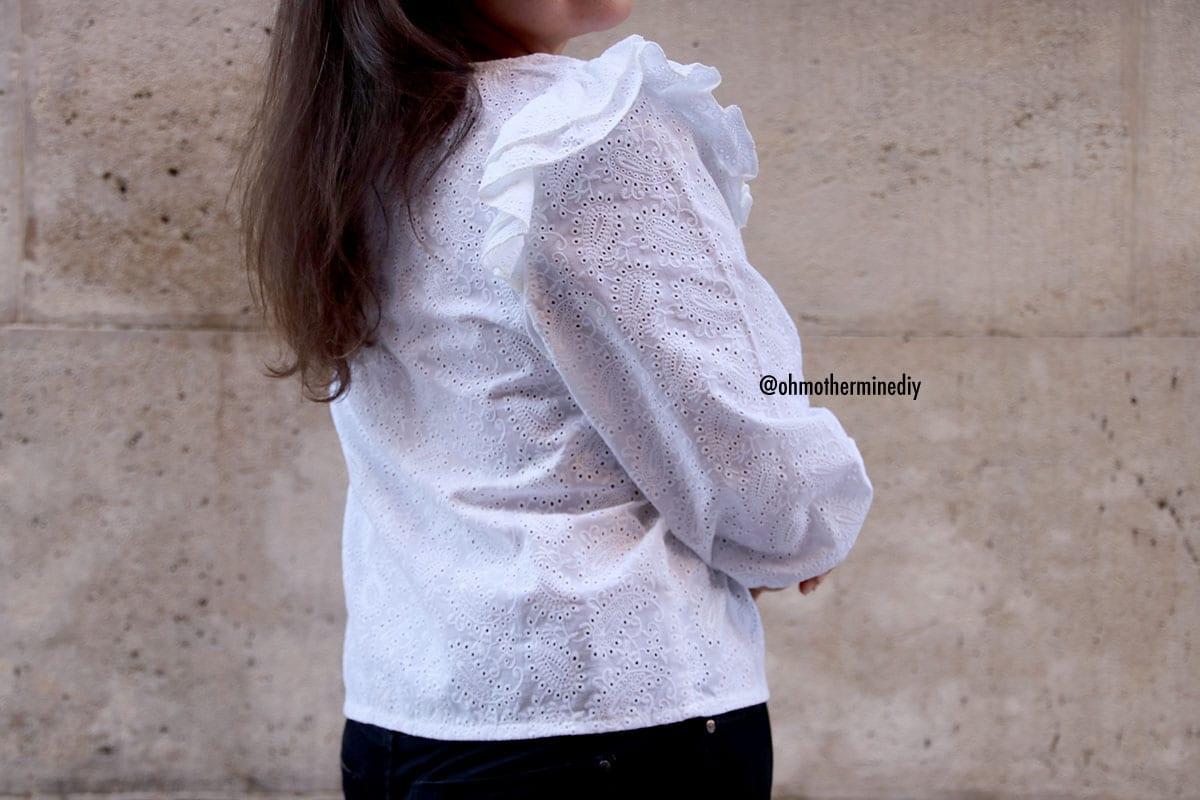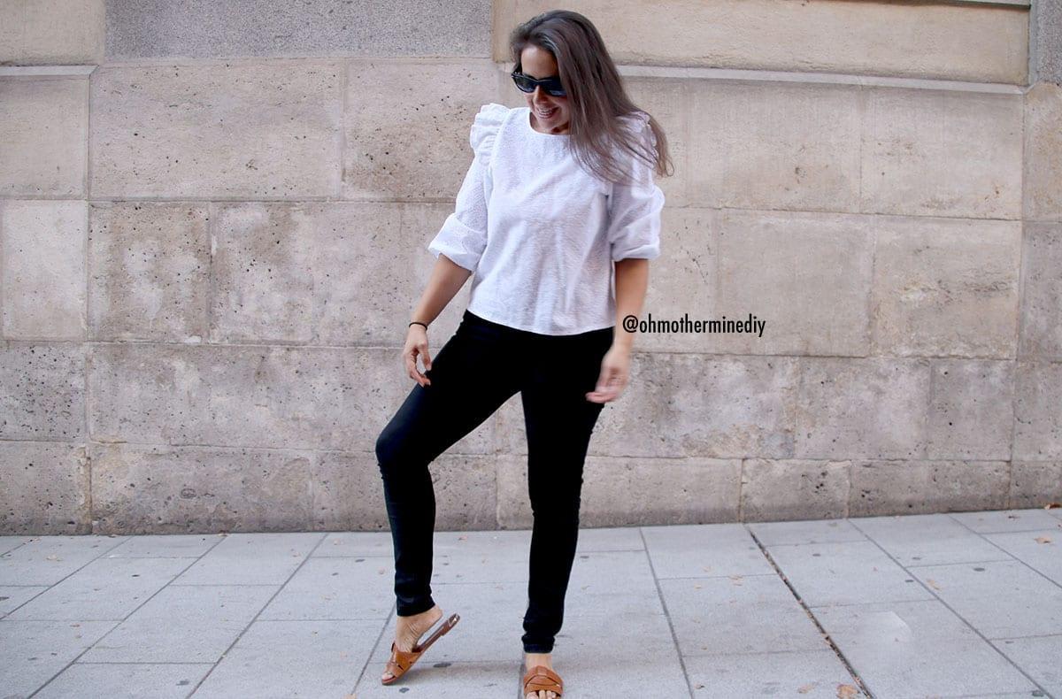 Es una blusa con manga oversizes, doble volante en la costura de la manga y abertura en la espalda. Es una blusa para ponerse todos los días, con vaqueros, con pantalones arreglados y además queda fenomenal.