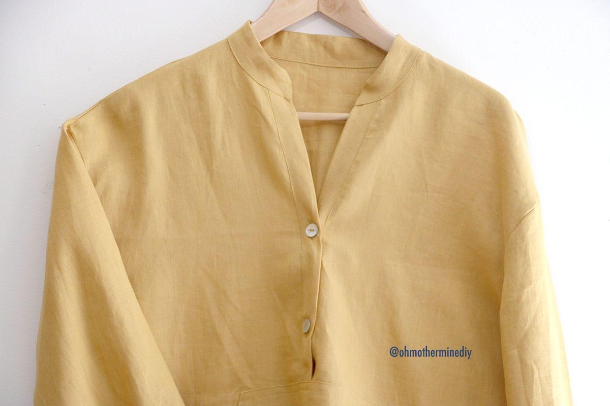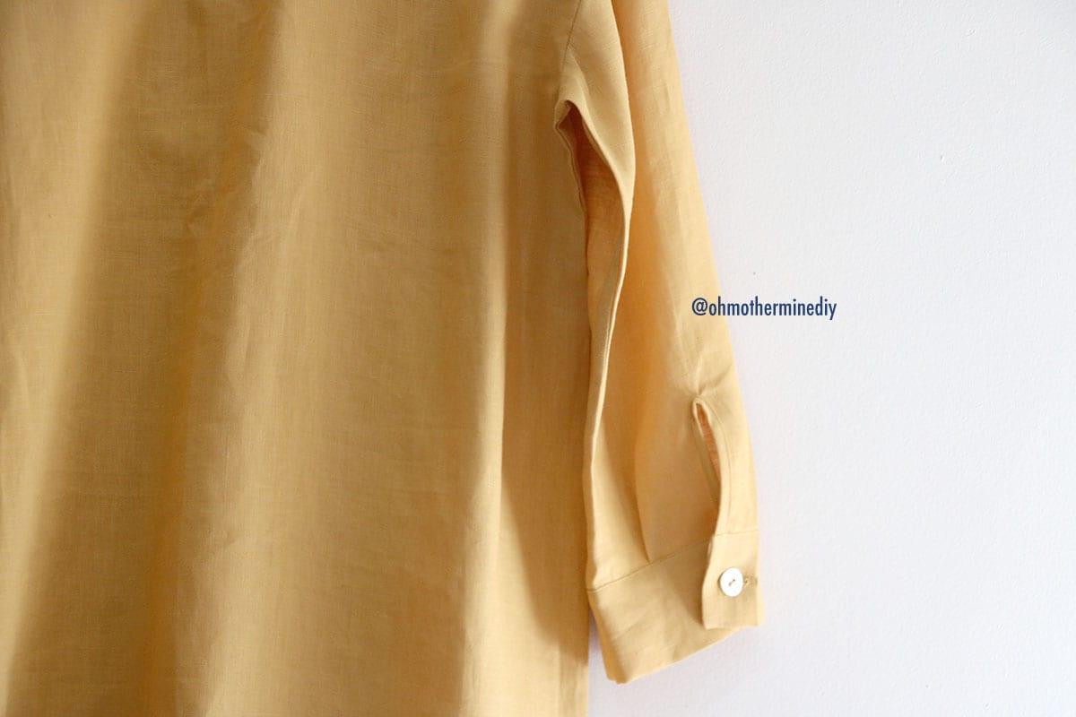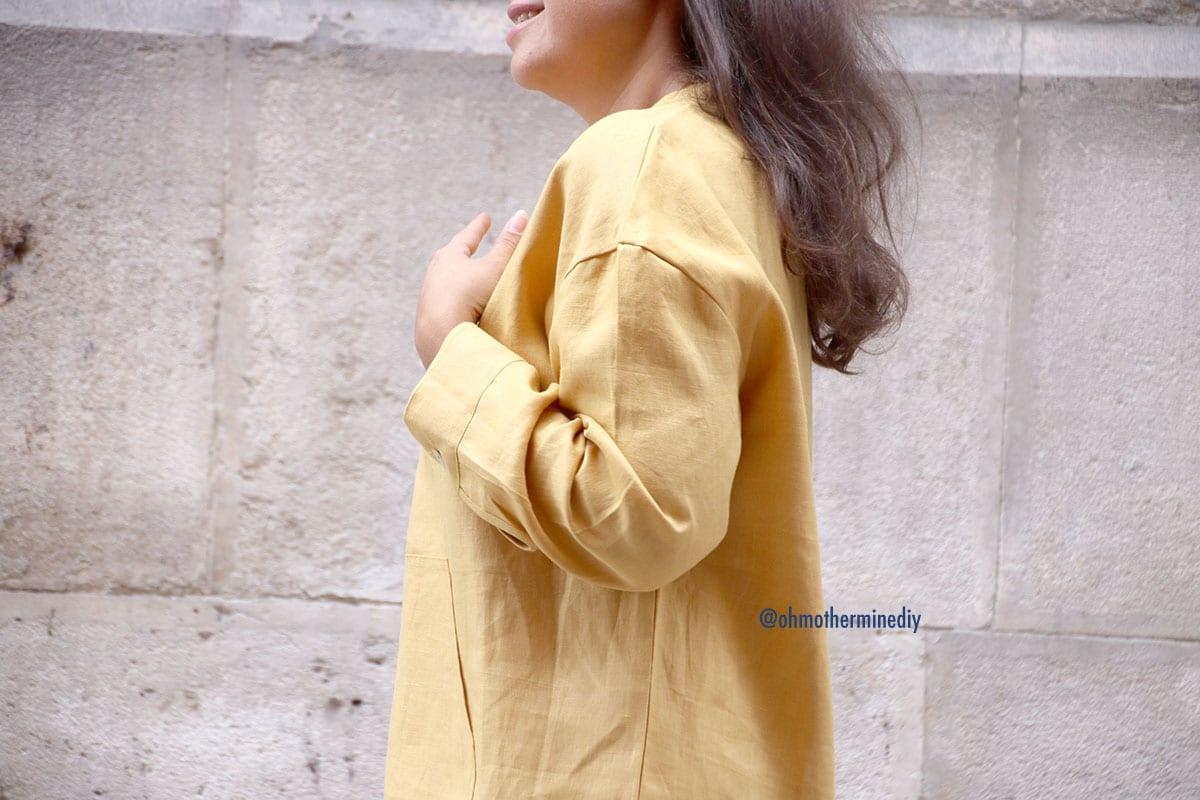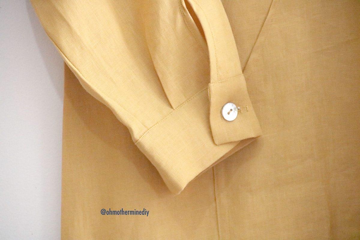 La confección del vestido no es tan compleja como parece, lo que sí tiene muchos detalles no lo hacen tan fácil de hacer. La costura de los puños y hacer los pliegues de tal forma que en ambas mangas queden iguales, la costura de la solapa y el cuello, quizás son las complicaciones que a la hora de coser, puede que os encontréis. Pero atentas porque mi madre, os va a dar unos trucos infalibles para que la costura sea más sencilla.La tela al ser un lino es perfecta, bastante manejable y no es una tela que nos descuadre mucho las piezas de patrón. Además tiene un planchado sencillo y si queréis facilitaros la tarea, planchar antes de coser a máquina!!! Porque seguro que os dará un resultado espectacular