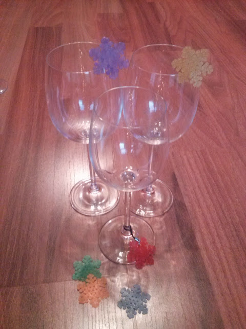 Los pequeños, los he hecho con Hamas de tamaño MINI y han sido para adornar e identificar las copas (marcadores de copas), mirad como me quedaron: