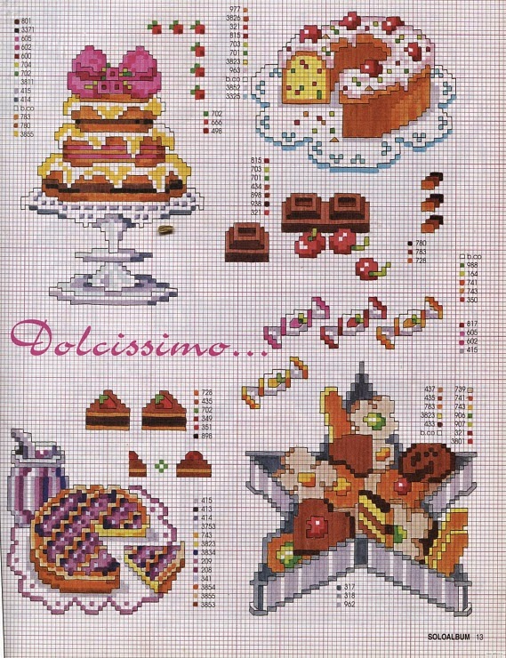 Os dejo unos patrones de pastelitos para punto de cruz ^_^