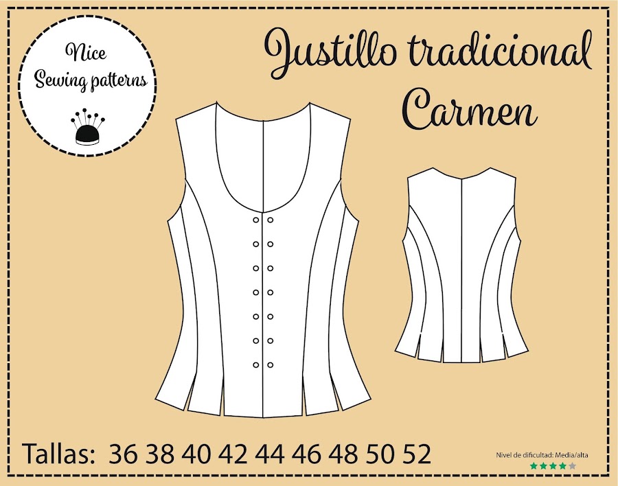 Por muy poco dinero, tendrás el patrón completo del justillo, escalado en todas las tallas desde la 36 hasta la 52.