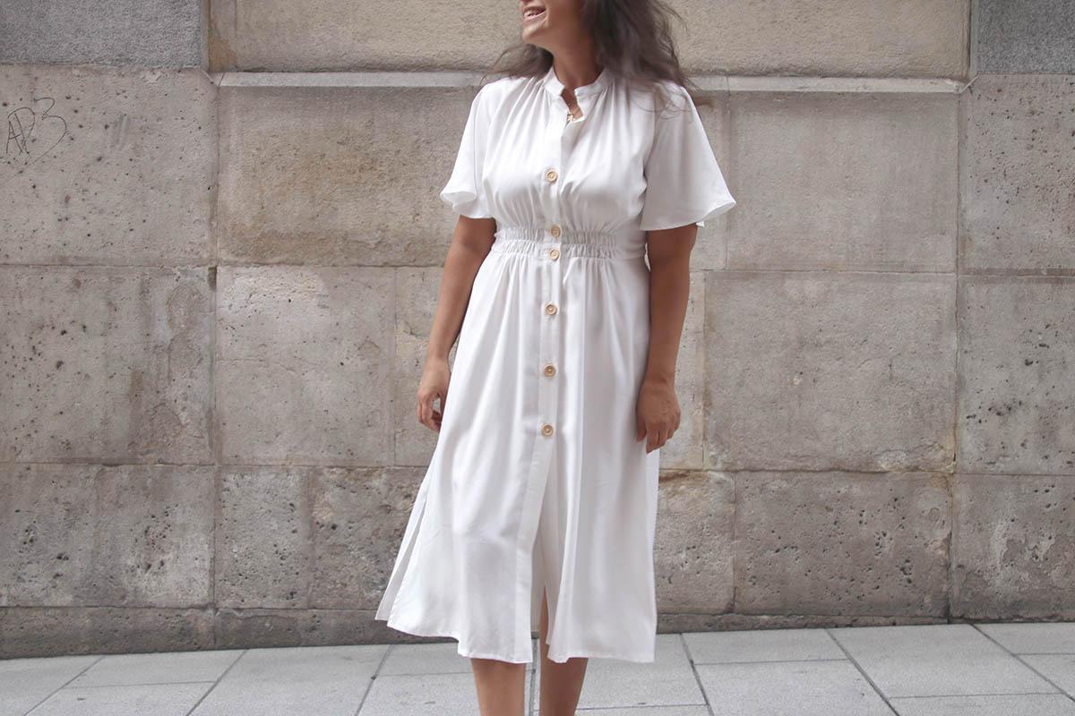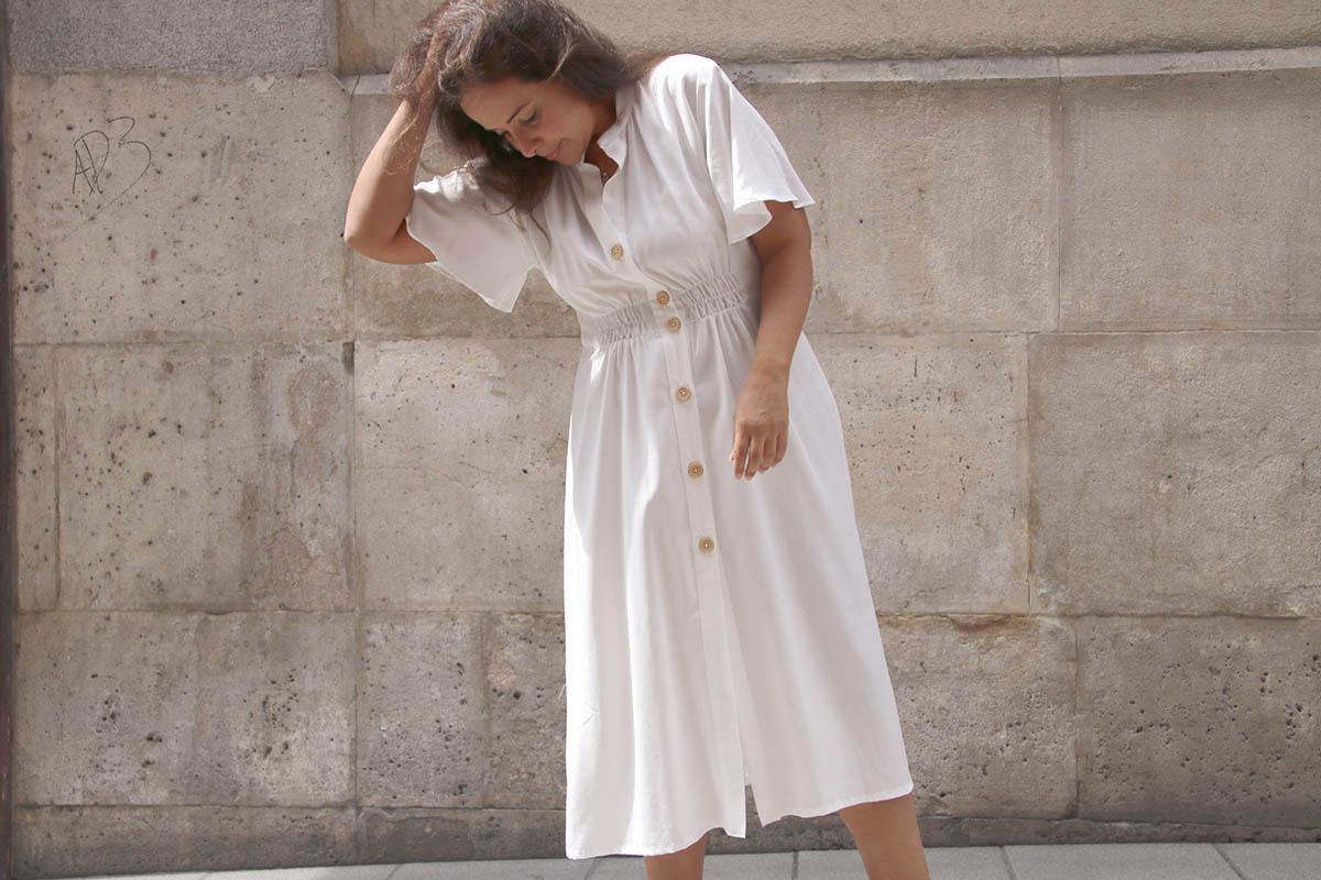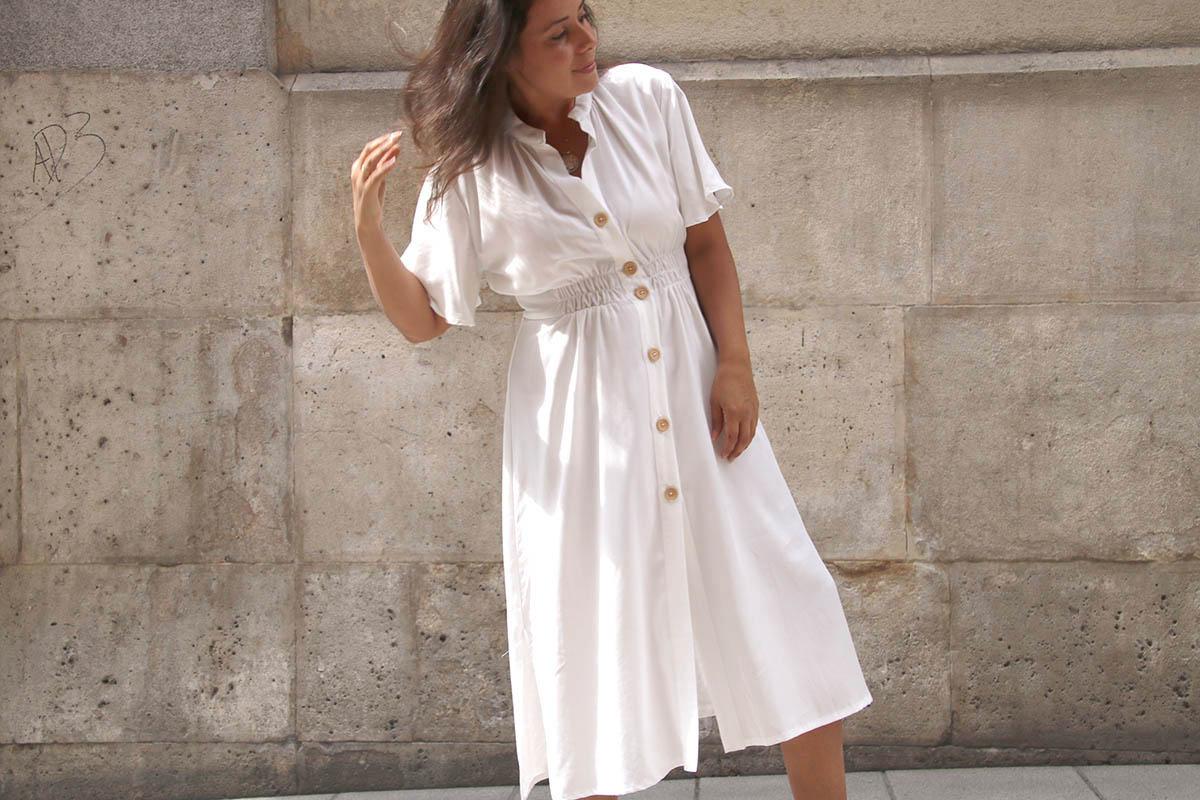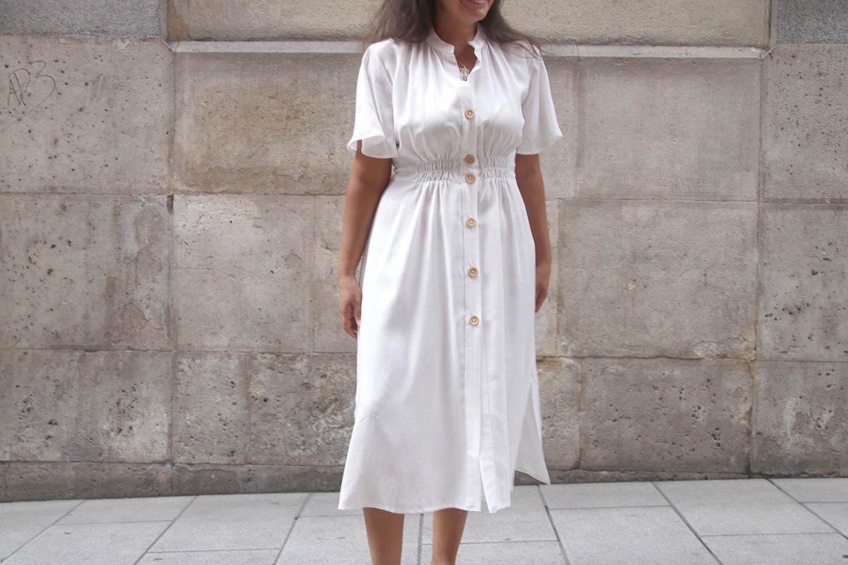 Una cosilla importante, si elegís una tela blanca, como yo lo hice, mirad bien que no se transparente nada de nada… Cierto es que la tela que yo elegí afortunadamente se transparenta poco, pero el color blanco es que es muy traicionero, y según la ropa interior que lleves puesta, te puede jugar malas pasadas. Por lo demás es un vestido largo, que se lleva muchísimo, y además según la tela o estampado que utilicéis os valdrá para el día o para la noche!
