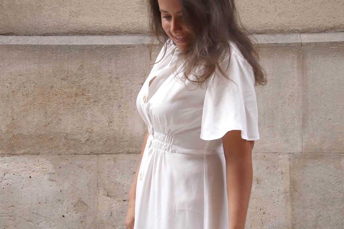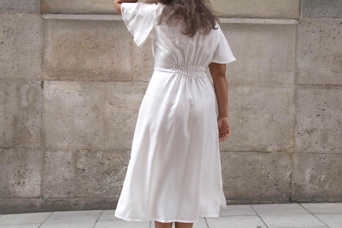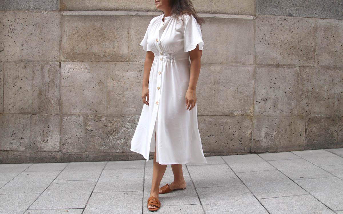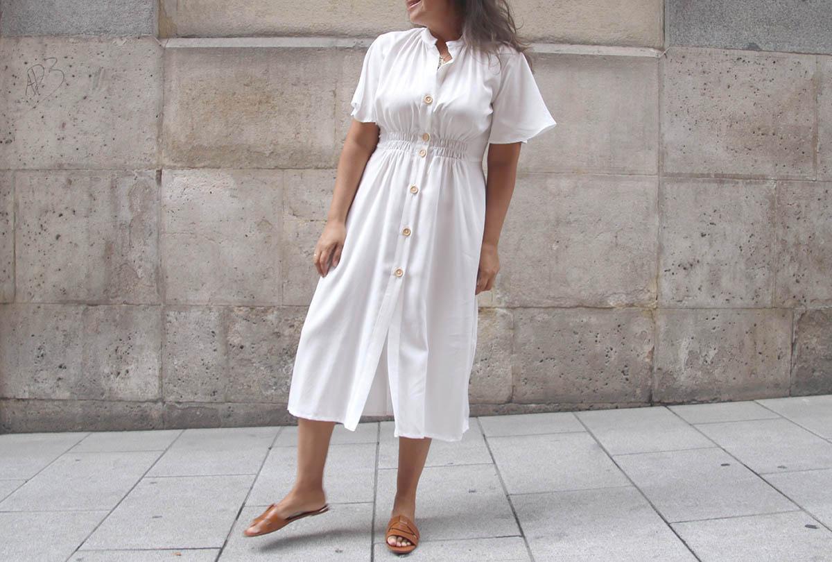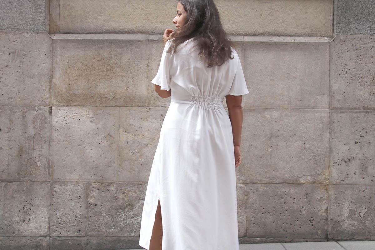 Una cosilla importante, si elegís una tela blanca, como yo lo hice, mirad bien que no se transparente nada de nada… Cierto es que la tela que yo elegí afortunadamente se transparenta poco, pero el color blanco es que es muy traicionero, y según la ropa interior que lleves puesta, te puede jugar malas pasadas. Por lo demás es un vestido largo, que se lleva muchísimo, y además según la tela o estampado que utilicéis os valdrá para el día o para la noche!