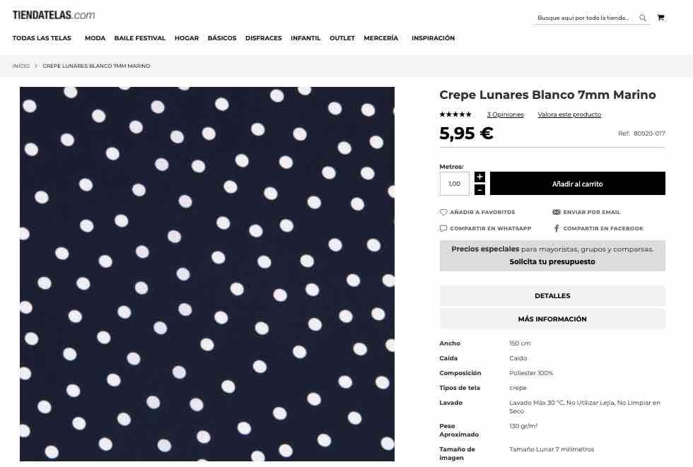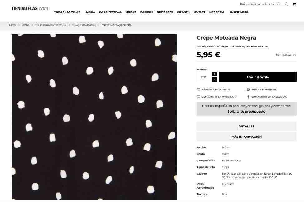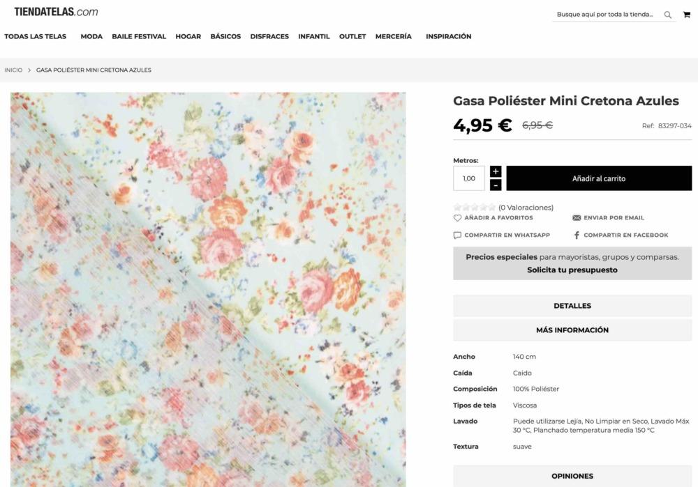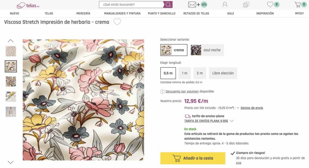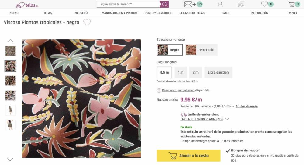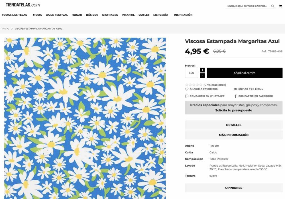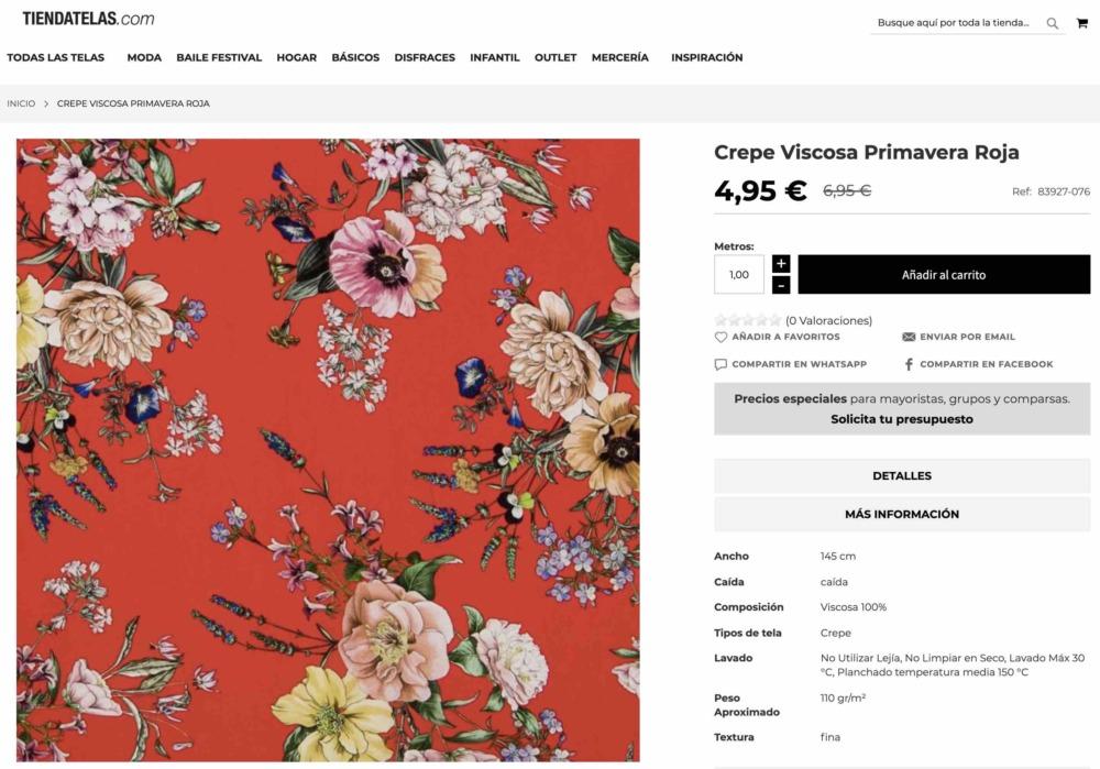 La tela la compre en TiendaTelas.com que es la tienda online de Ribes&Casals, la compré hace mucho tiempo… pero seguro que tienen una gran variedad de crepe/crespón o viscosa que podéis utilizar para este vestido!