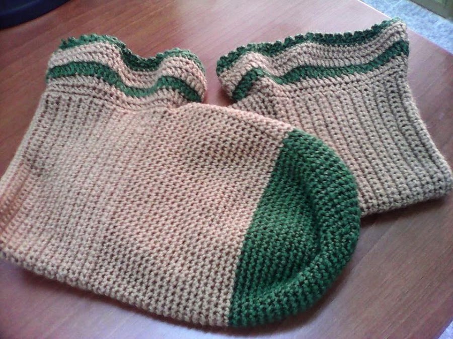 Vuelvo a decir, como el año pasado, que quitados se ven muy "ortopédicos" pero puestos se amoldan perfectamente al pie y quedan muy bien. Así que si quieres tener los pies bien calentitos este invierno sólo tienes que ponerte en cotacto con Cosas de Loly en el correo cosasdeloli@gmail.com y por 10 ??? más gastos de envío los tienes en casa del color que más te guste, lisos o combinados. Quieres de rayas? Pues pidelos.
