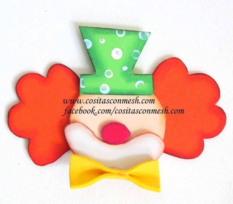 6.-Pega el cabello detrás de la carita del payaso.
