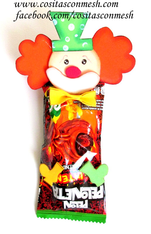 Compra paletas, o dulces en bolsitas para que puedas pegar los payasitos en el, a mi me gusto como quedo, y espero que esta manualidad te pueda servir, si tienes amigas que necesiten hacer dulceros, compartelo este tutorial con ella :) .