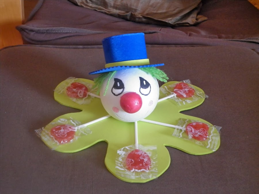 Este payaso fue el regalo que dio mi cuñada en su boda para los niños, los hice de varios colores y gustó mucho.